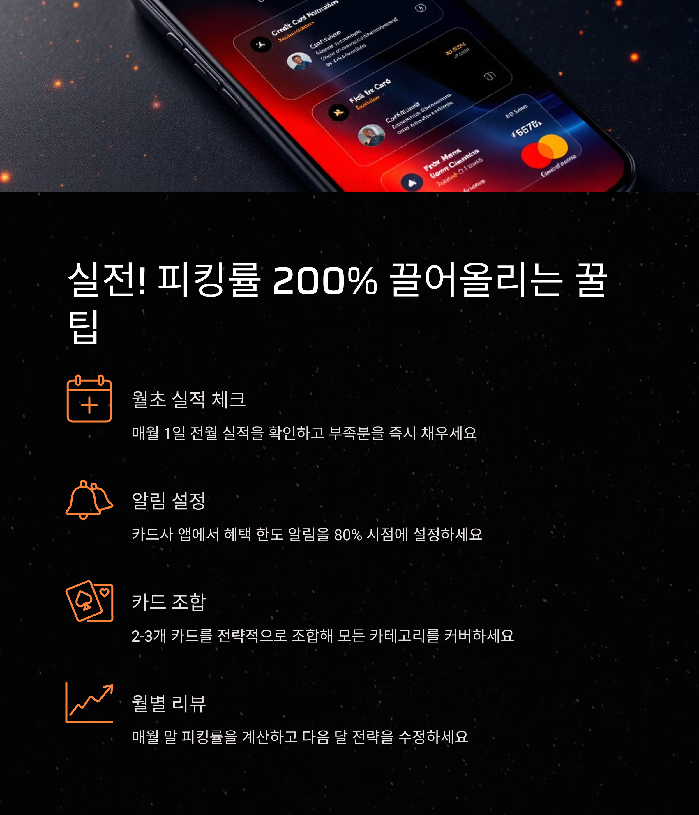 - 복잡함에 지쳐 포기: 너무 많은 카드를 사용하면 관리가 어렵고 피로도가 높아집니다. 2~3개의 핵심 카드 조합으로 시작하여 점차 최적화해나가는 것을 추천합니다.