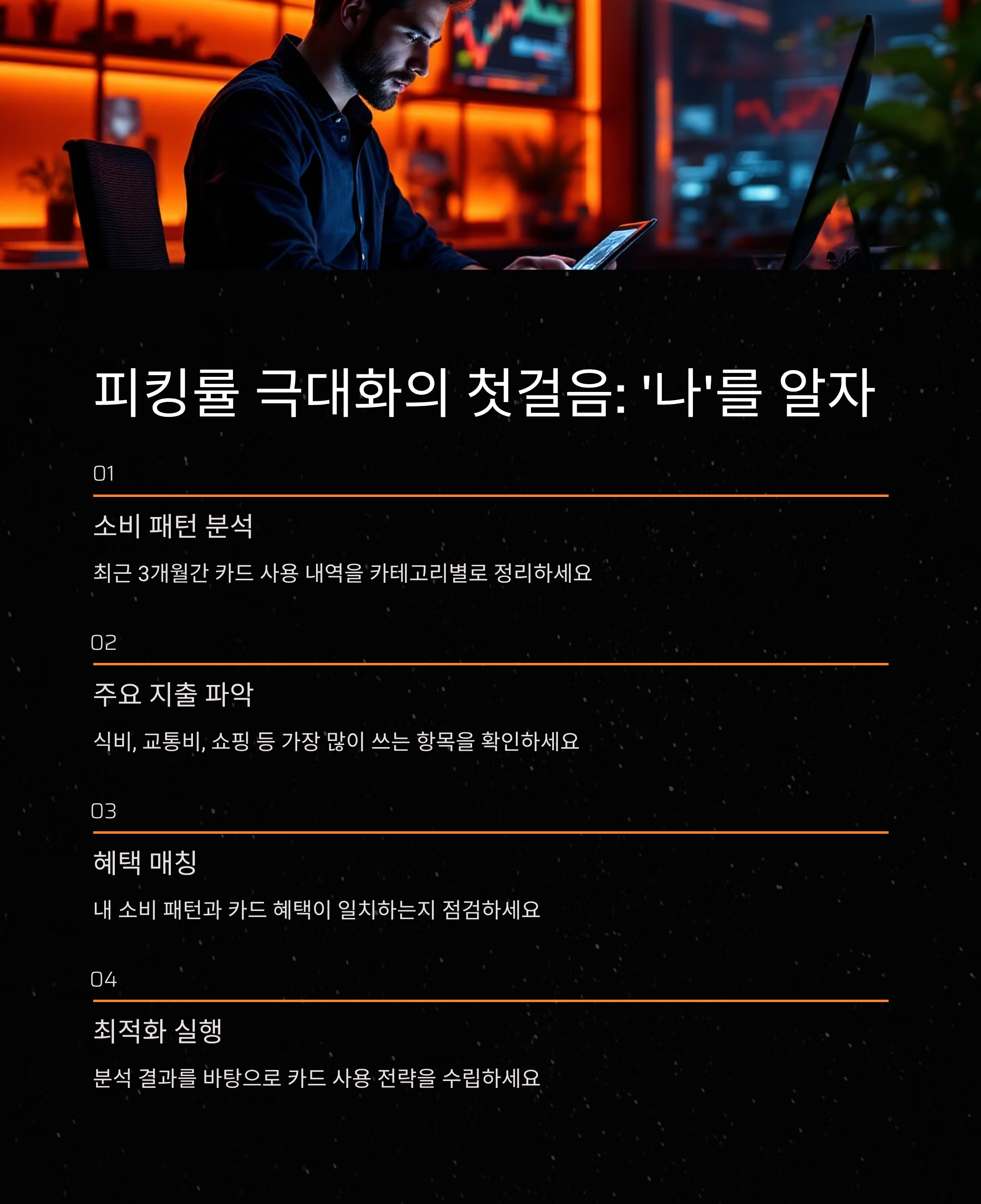 신용카드 고수들은 카드를 '소비'의 도구가 아닌 '재테크'의 수단으로 활용합니다. 그 핵심 비결이 바로 '피킹률' 관리에 있습니다. 이번 글에서는 잠자고 있는 당신의 카드 혜택을 100% 깨워, 매달 커피 몇 잔 값을 더 아낄 수 있는 신용카드 피킹률 극대화 전략을 A to Z까지 알려드리겠습니다. 💳
