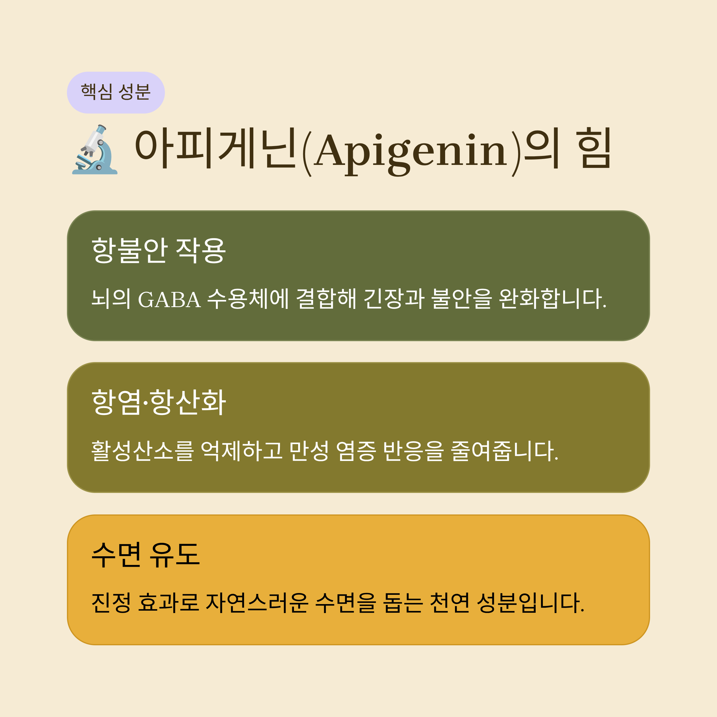 🔬 핵심 성분: 아피게닌(Apigenin)의 힘