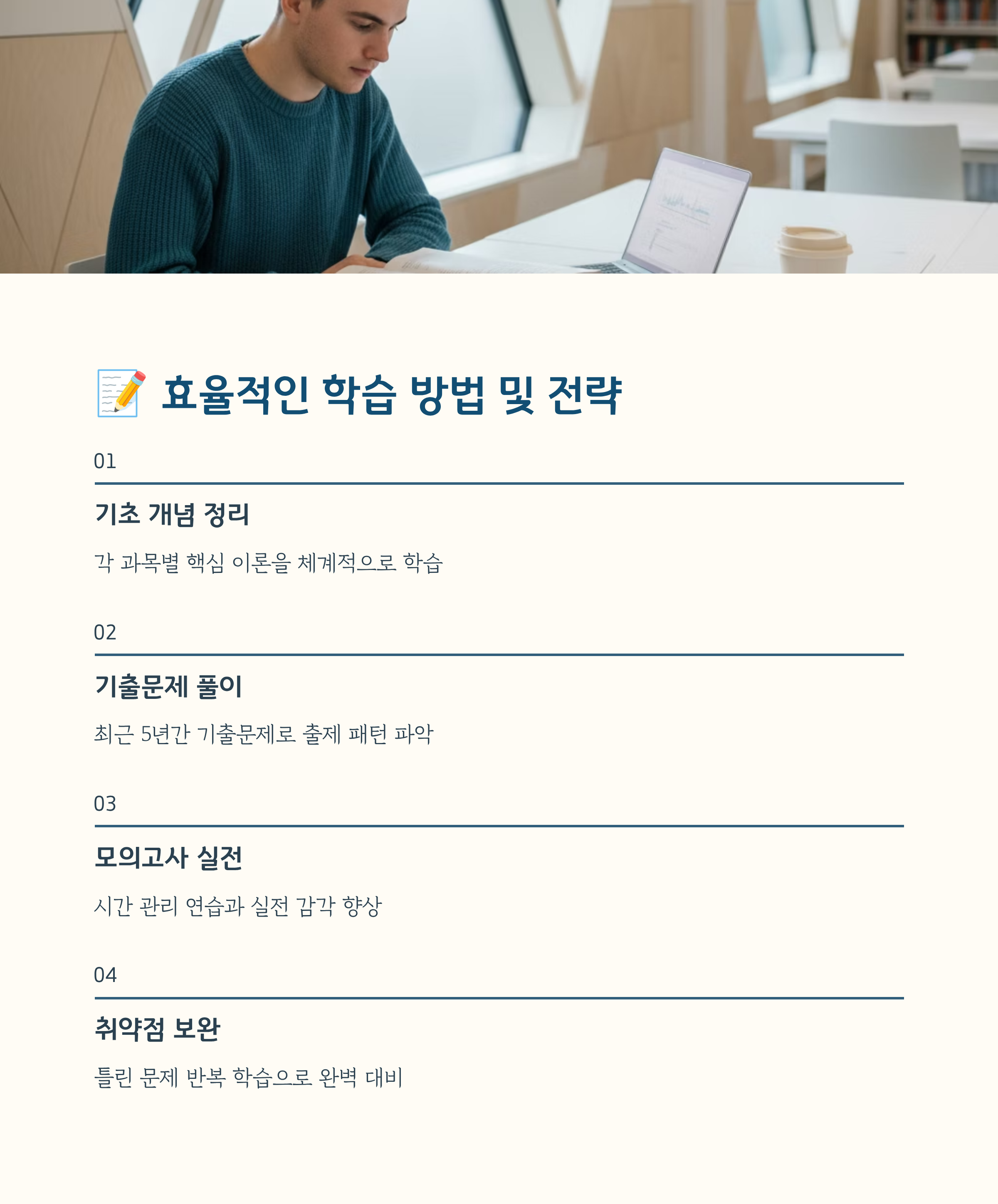 | 컴퓨터 일반 (1과목) | 40% | 기초 개념 이해, 용어 암기, 기출문제 반복 |