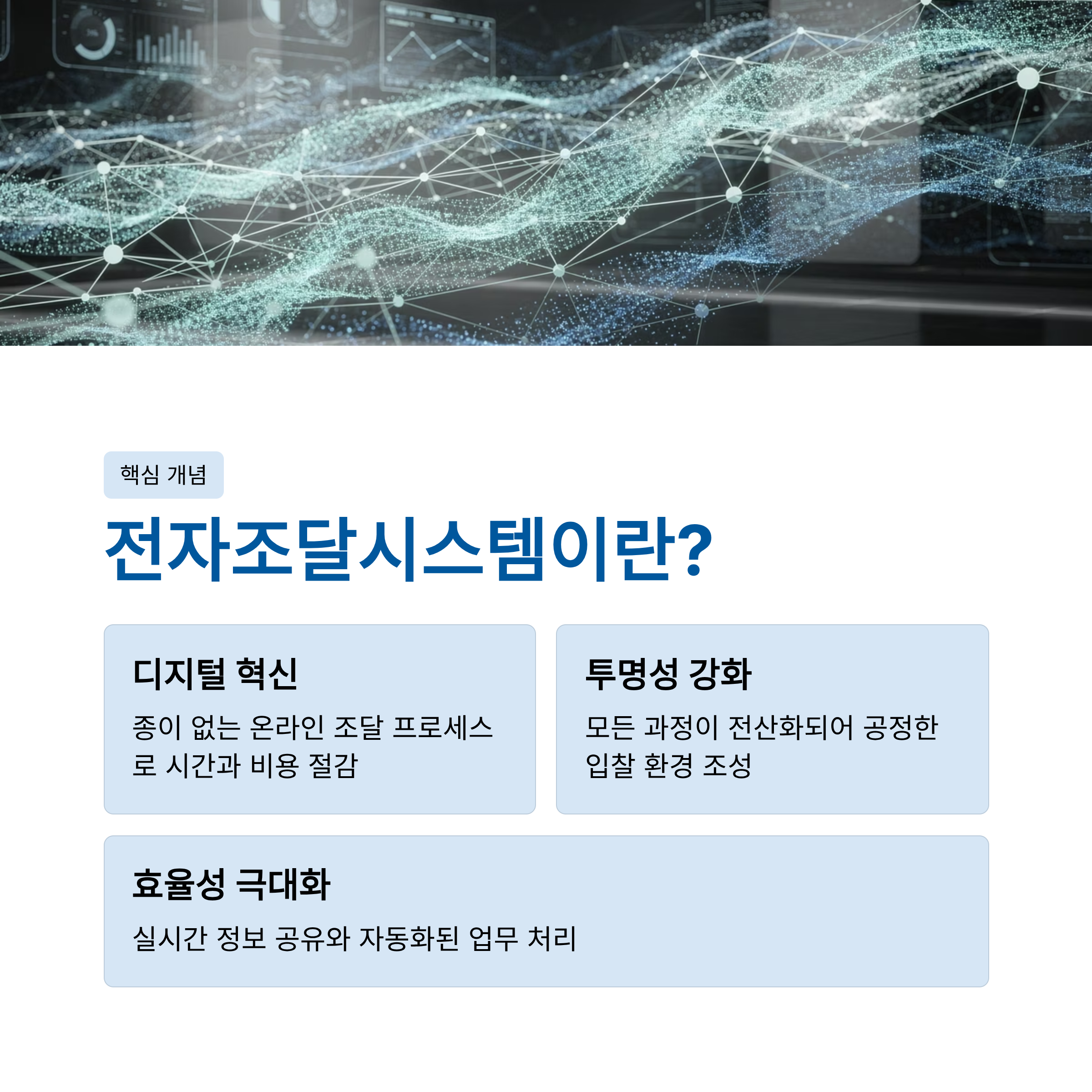 - 목적: 조달 과정의 투명성, 공정성, 효율성을 높이고, 기업들의 참여를 더욱 용이하게 합니다.