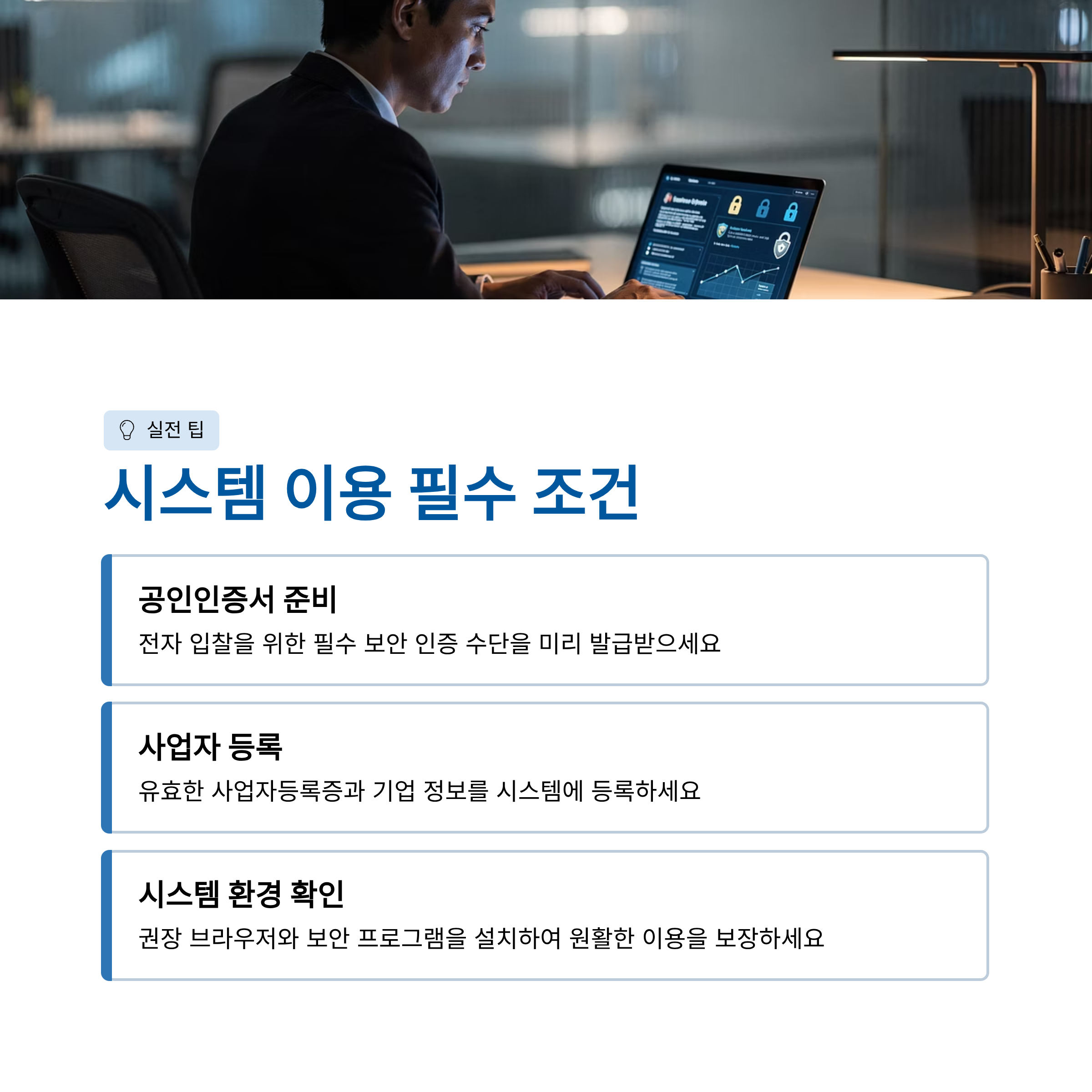 LH 전자조달시스템을 원활하게 이용하기 위해서는 몇 가지 필수 조건과 유용한 팁이 있습니다.