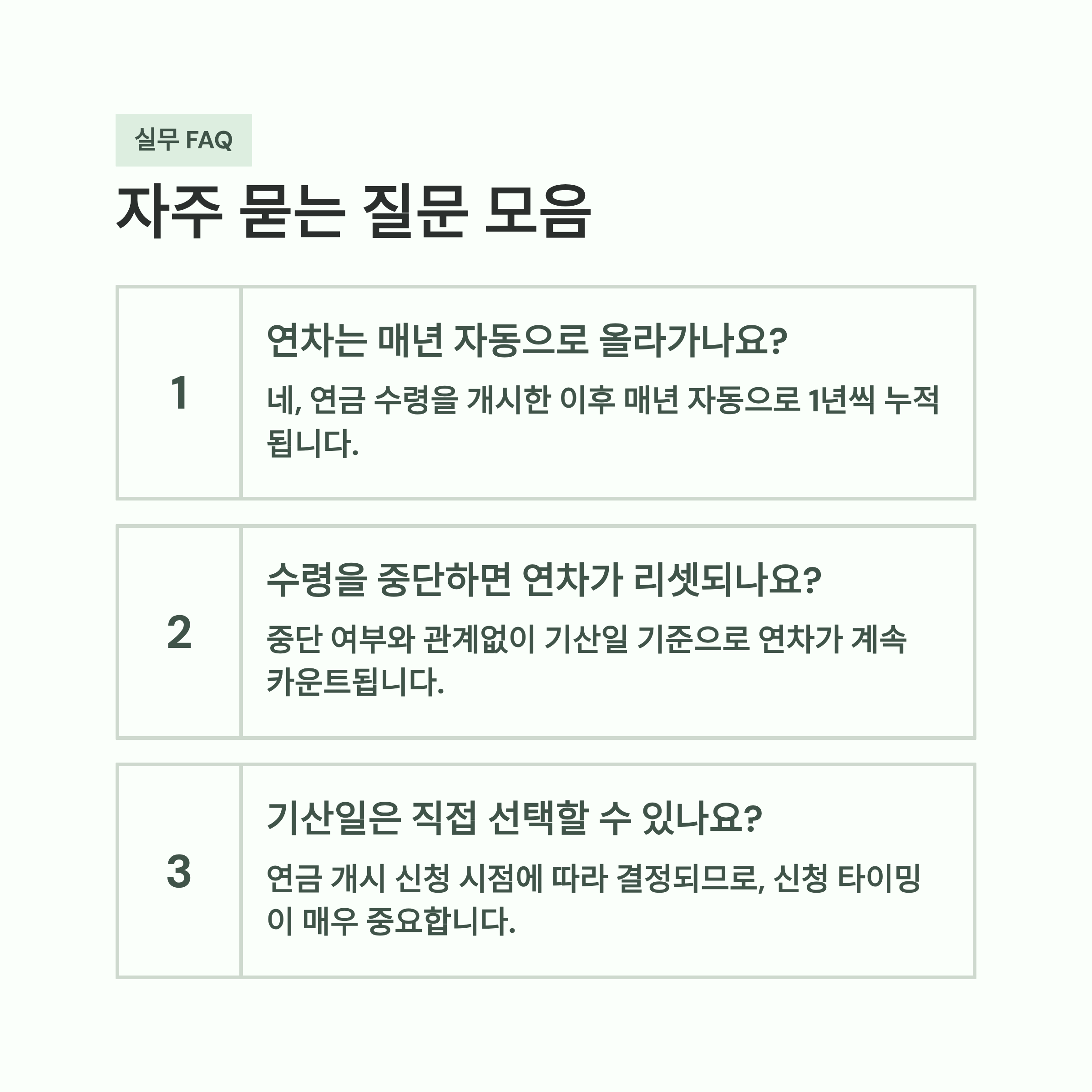 Q1. 연금 수령 중에 1년을 쉬면 연차도 멈추나요?