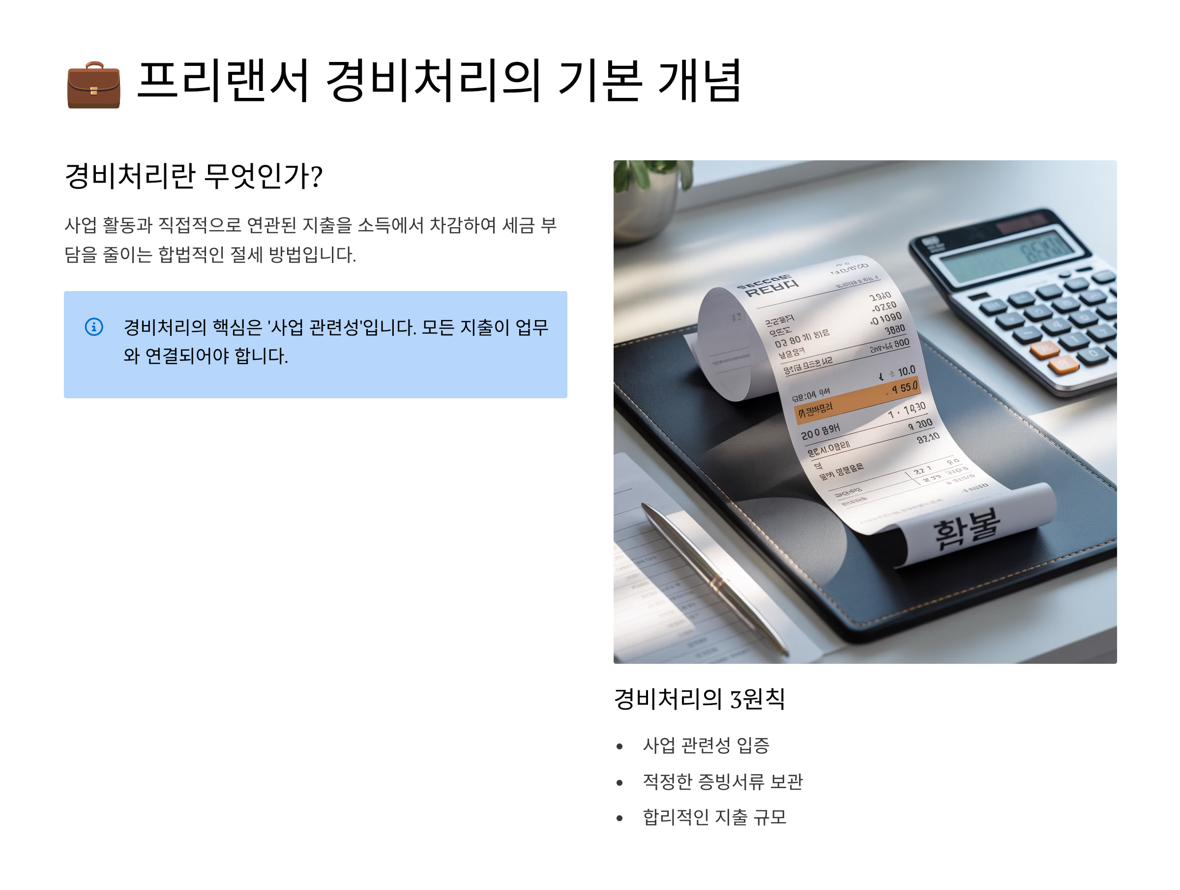 프리랜서로 활동하면서 일정 수익 이상을 벌기 시작하면 가장 먼저 고민되는 게 바로 ‘경비처리’ 문제예요. 단순히 버는 만큼 다 세금을 내는 구조가 아니다 보니, 적절하게 필요 경비를 처리해서 ‘순이익’을 낮추는 게 중요하죠. 💸