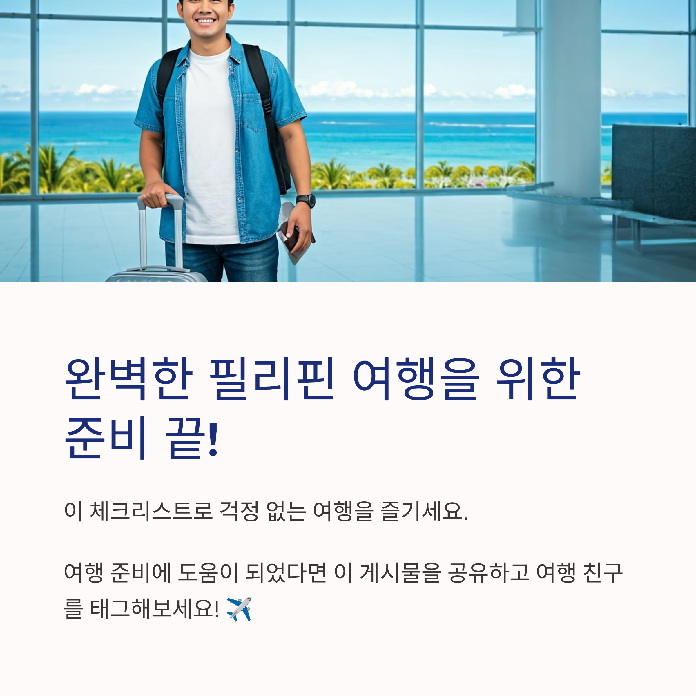 안녕하세요, 필리핀 여행 준비 시리즈 3번째 시간입니다! 지난번에는 필리핀의 매력적인 목적지와 여행 테마를 알아보는 시간을 가졌죠. 이제 슬슬 마음속으로 '어디로 갈지' 그림이 그려지고 있을 텐데요. 오늘은 "어디까지 알아봤나요?"라는 질문처럼, 본격적인 여행 실행을 위한 필수 준비 사항들을 꼼꼼하게 짚어보는 시간을 갖겠습니다.