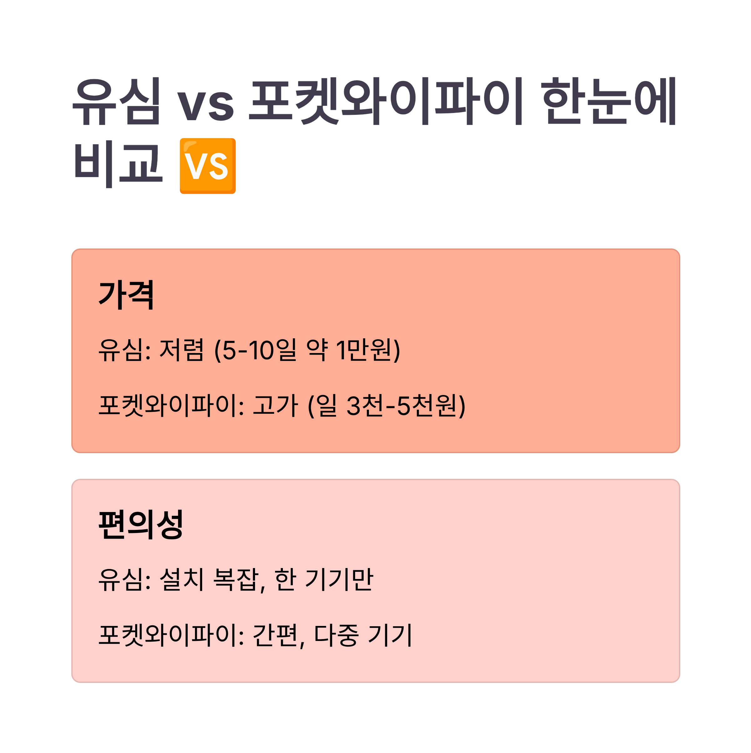유심 vs 포켓와이파이, 한눈에 비교 🆚