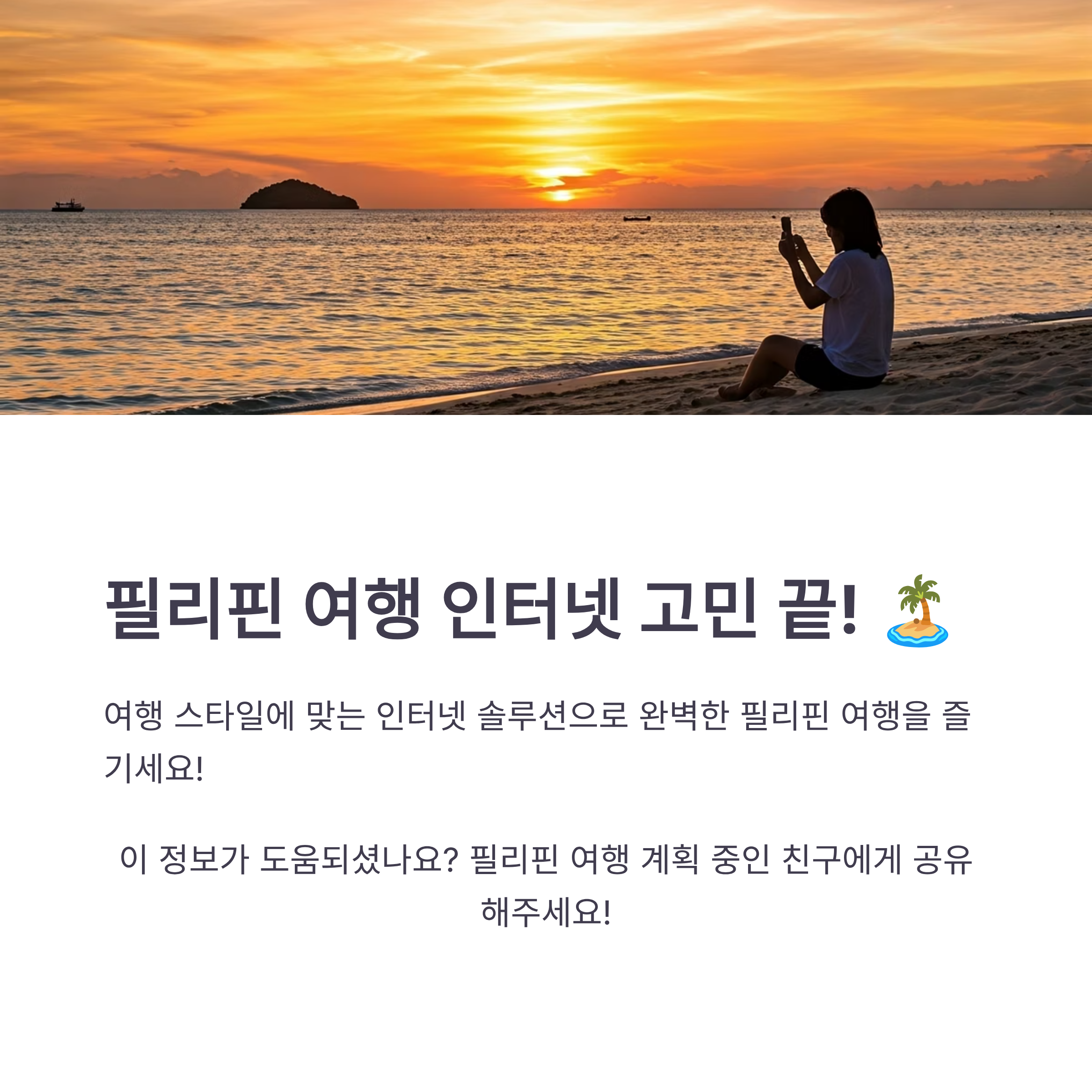 이 팁들을 잘 활용하여 필리핀에서의 인터넷 환경을 완벽하게 준비하고, 즐거운 여행을 만끽하세요! ☀️