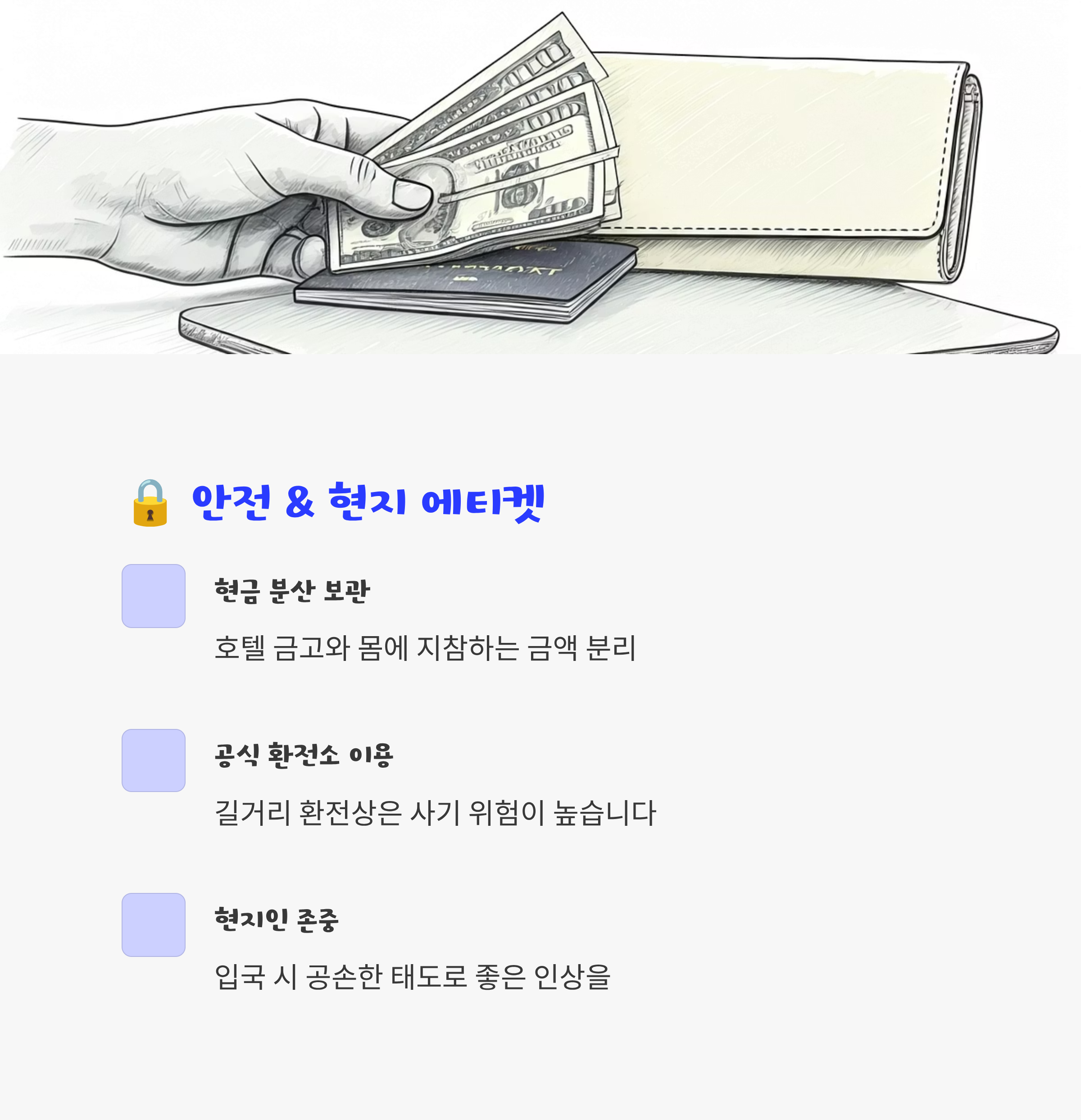 🔒 안전 & 현지 에티켓 (입국·환전 시)