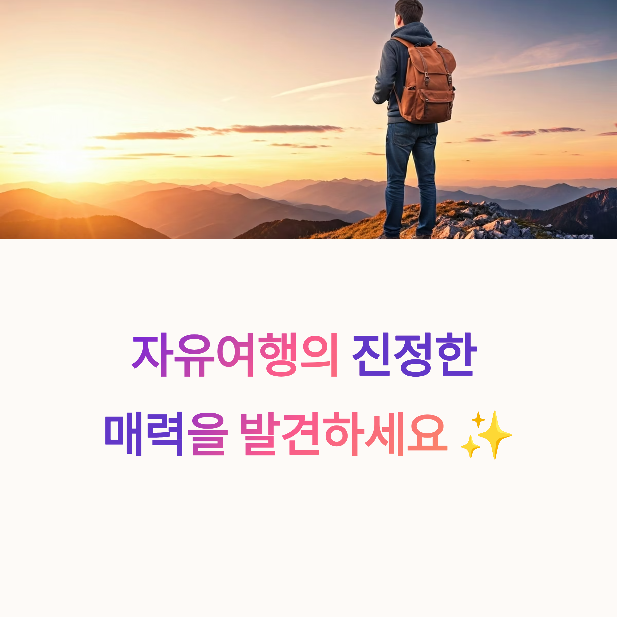 자유여행은 여러분을 새로운 세계로 이끌 뿐만 아니라, 새로운 자신을 만나게 하는 소중한 경험이 될 것입니다.