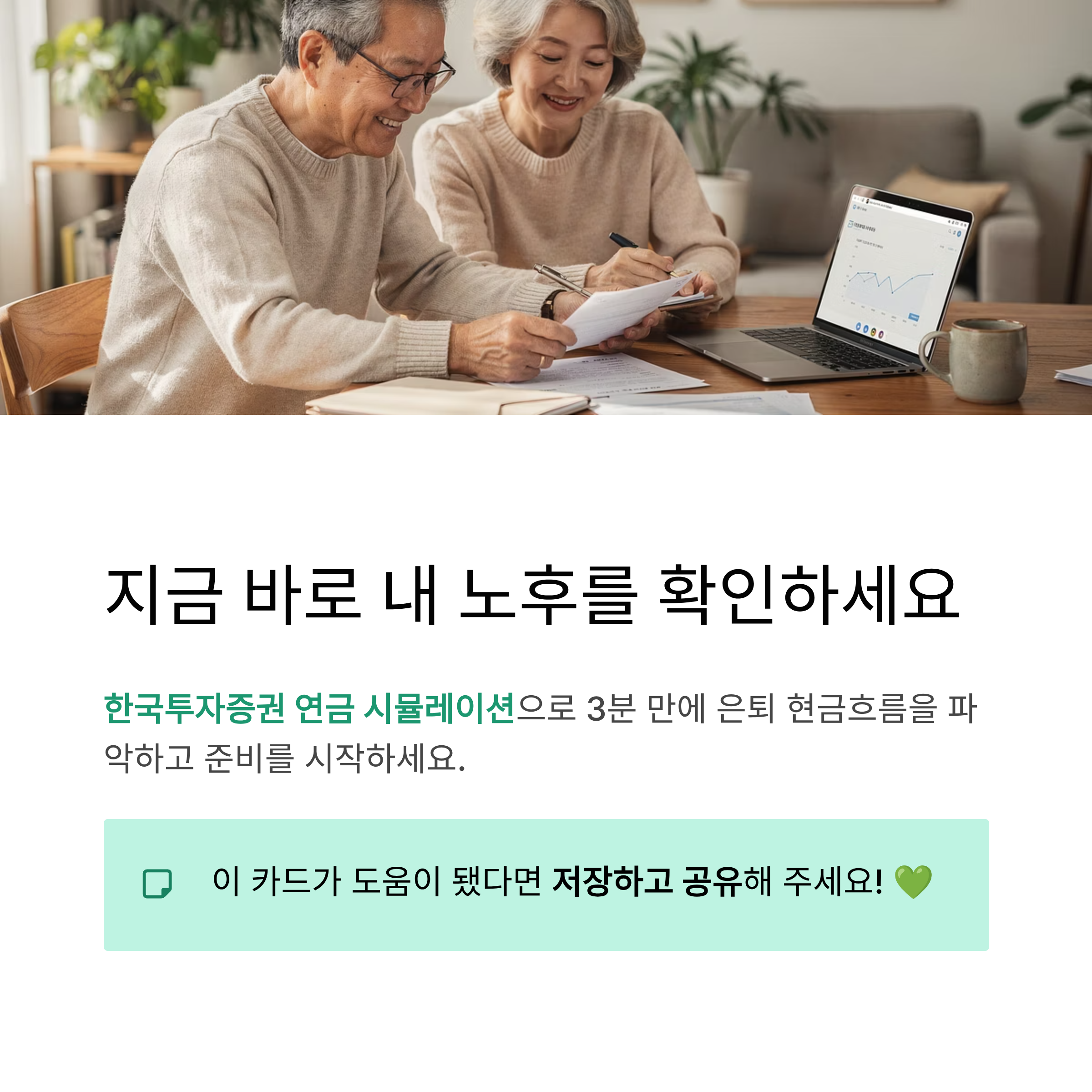 이번 글에서는 한국투자증권의 시뮬레이션 도구를 통해 내 노후 자산을 통합 관리하는 방법과, 시뮬레이션 결과에 따른 최적의 연금 운용 전략을 알아보겠습니다. 든든한 노후 현금흐름, 지금 바로 설계해 보세요! 👵👴💰