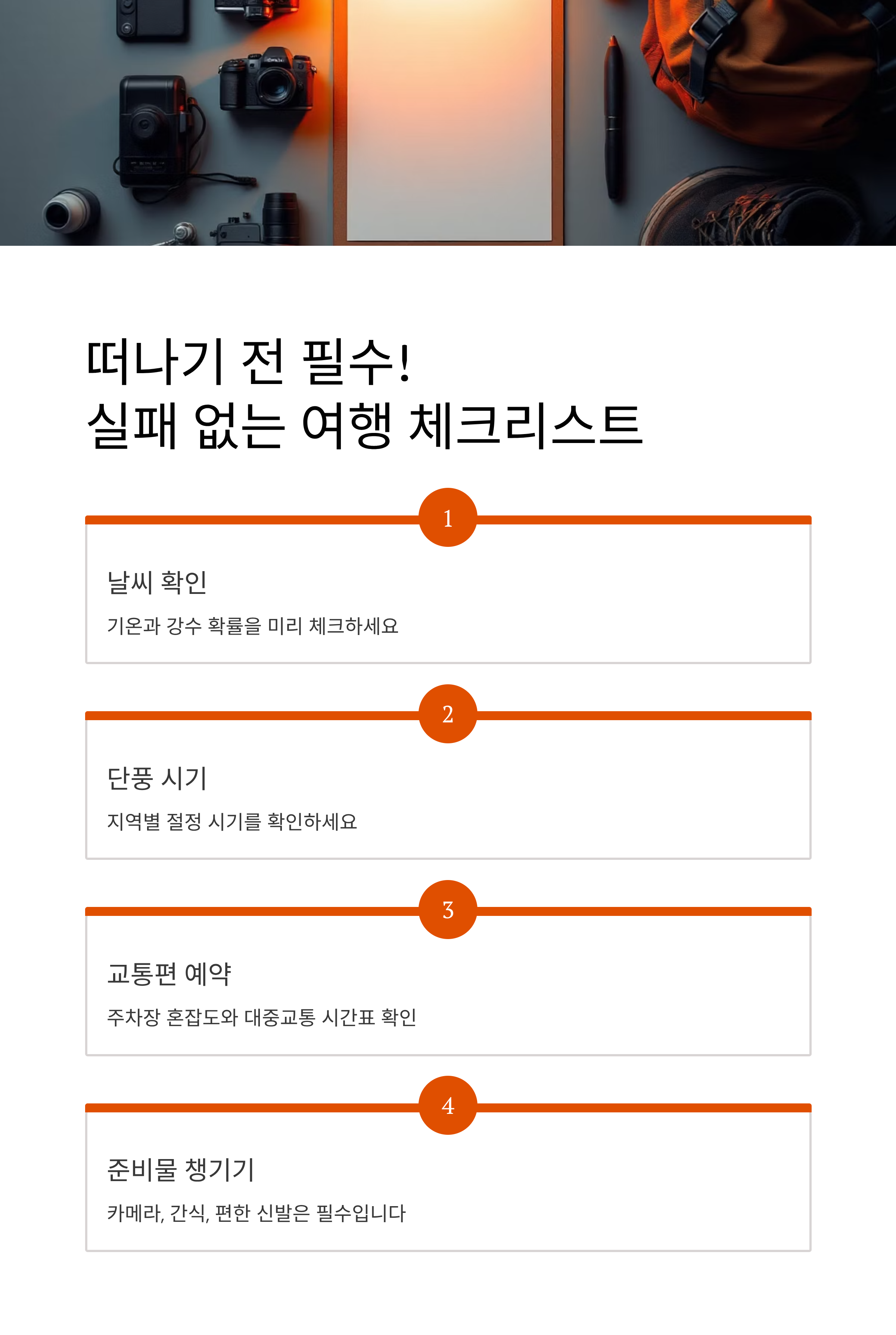 - ✅ 카메라, 스마트폰, 보조배터리 완전 충전 및 메모리 용량 확보