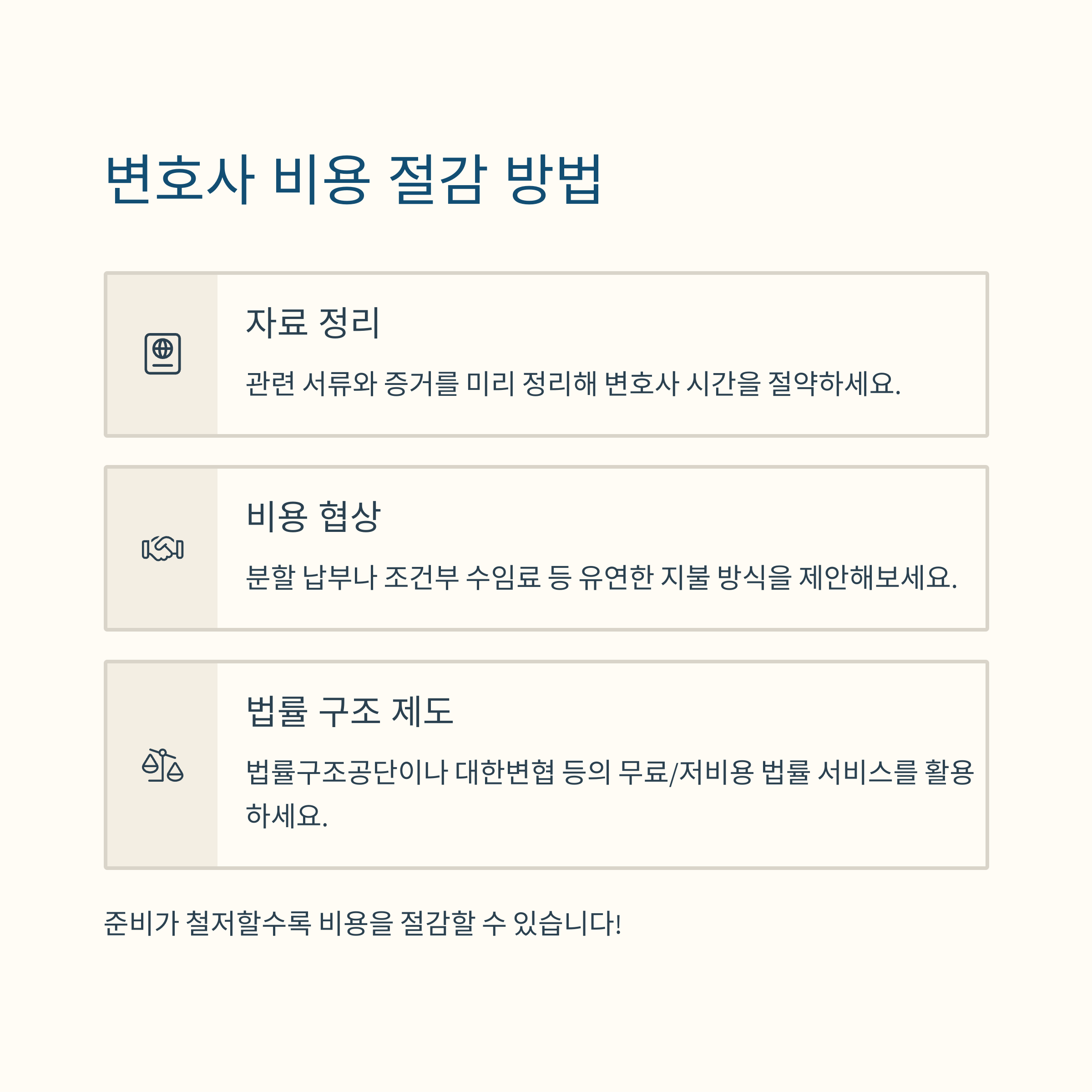 이러한 요인들을 고려하여 여러 변호사에게 상담을 받아보고 견적을 비교해 보는 것이 중요해요. 💡