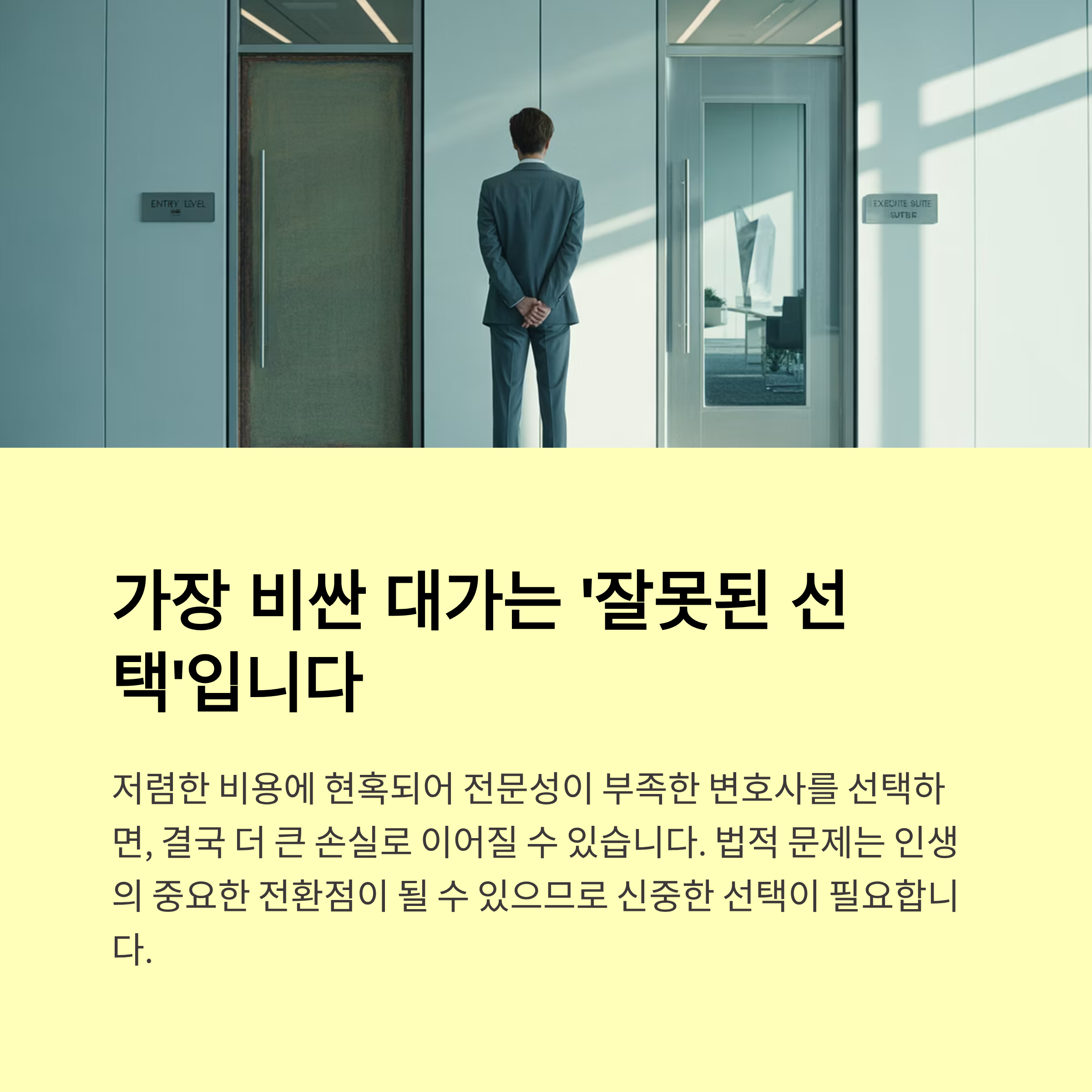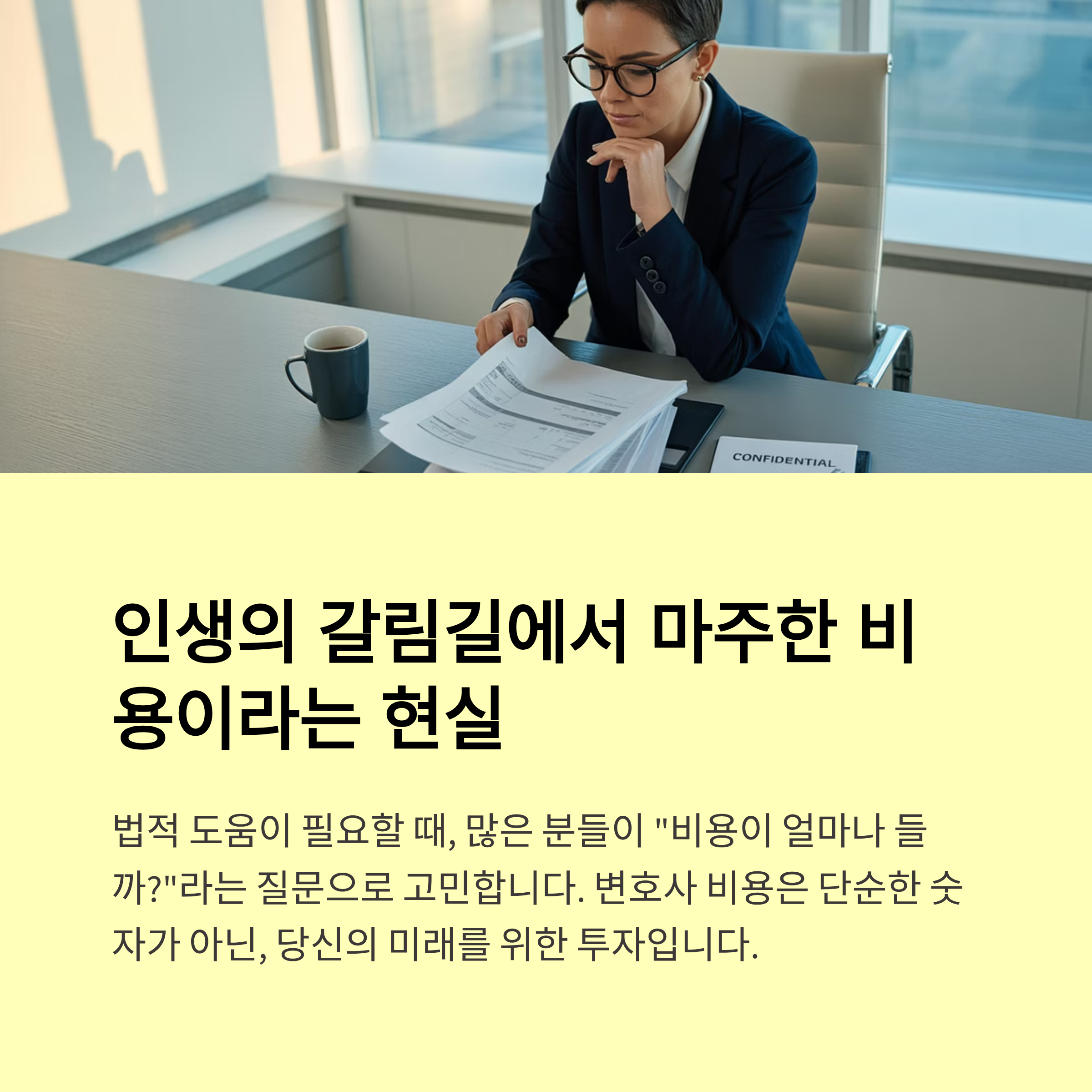 비용 부담은 클 수 있지만, 자신의 인생이 걸린 문제인 만큼 신중하고 현명하게 변호사를 선택해야 합니다.