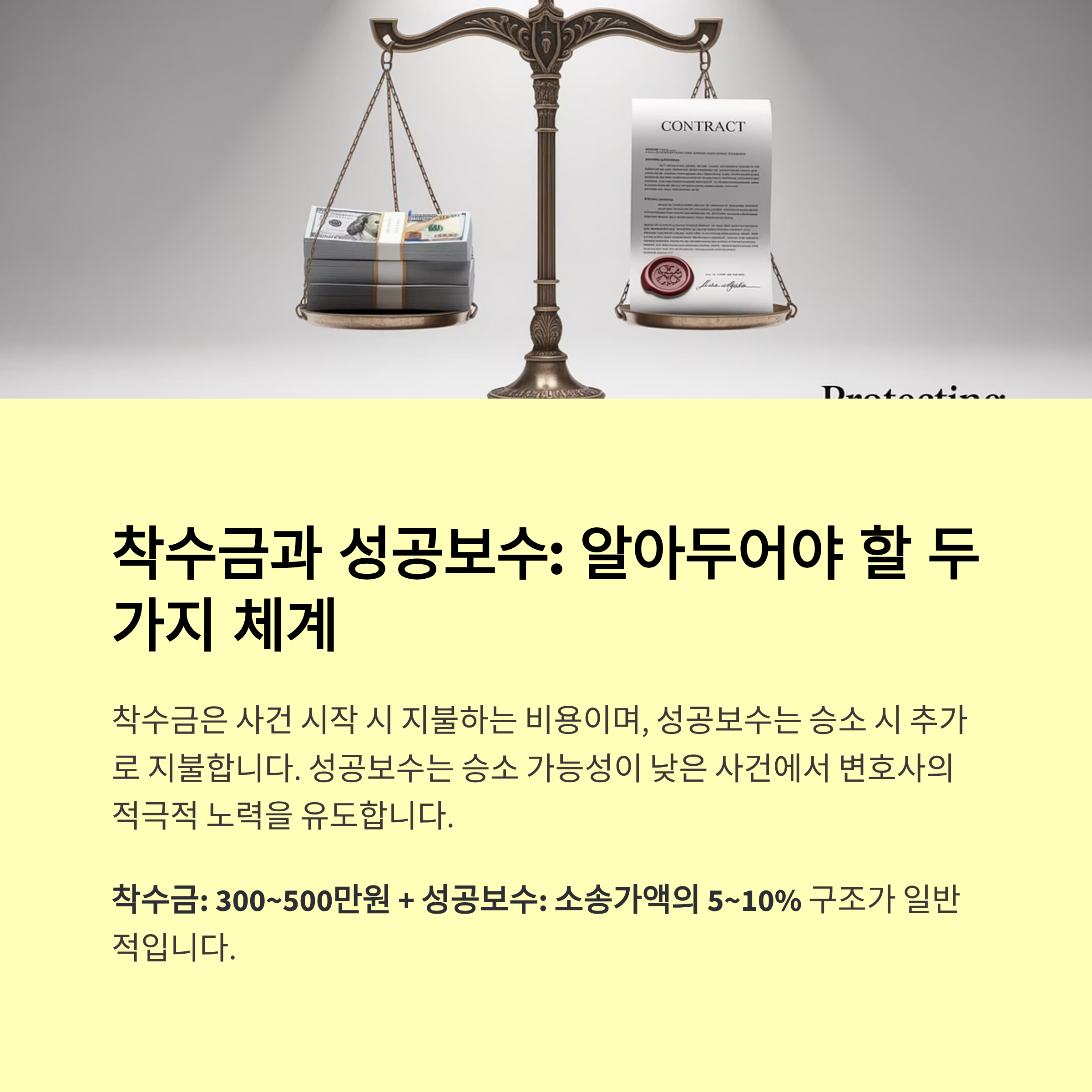 | 성공보수 | 사건 성공 시 추가 지급 (비율 또는 고정액) | 사건 종료 및 성공 시 |