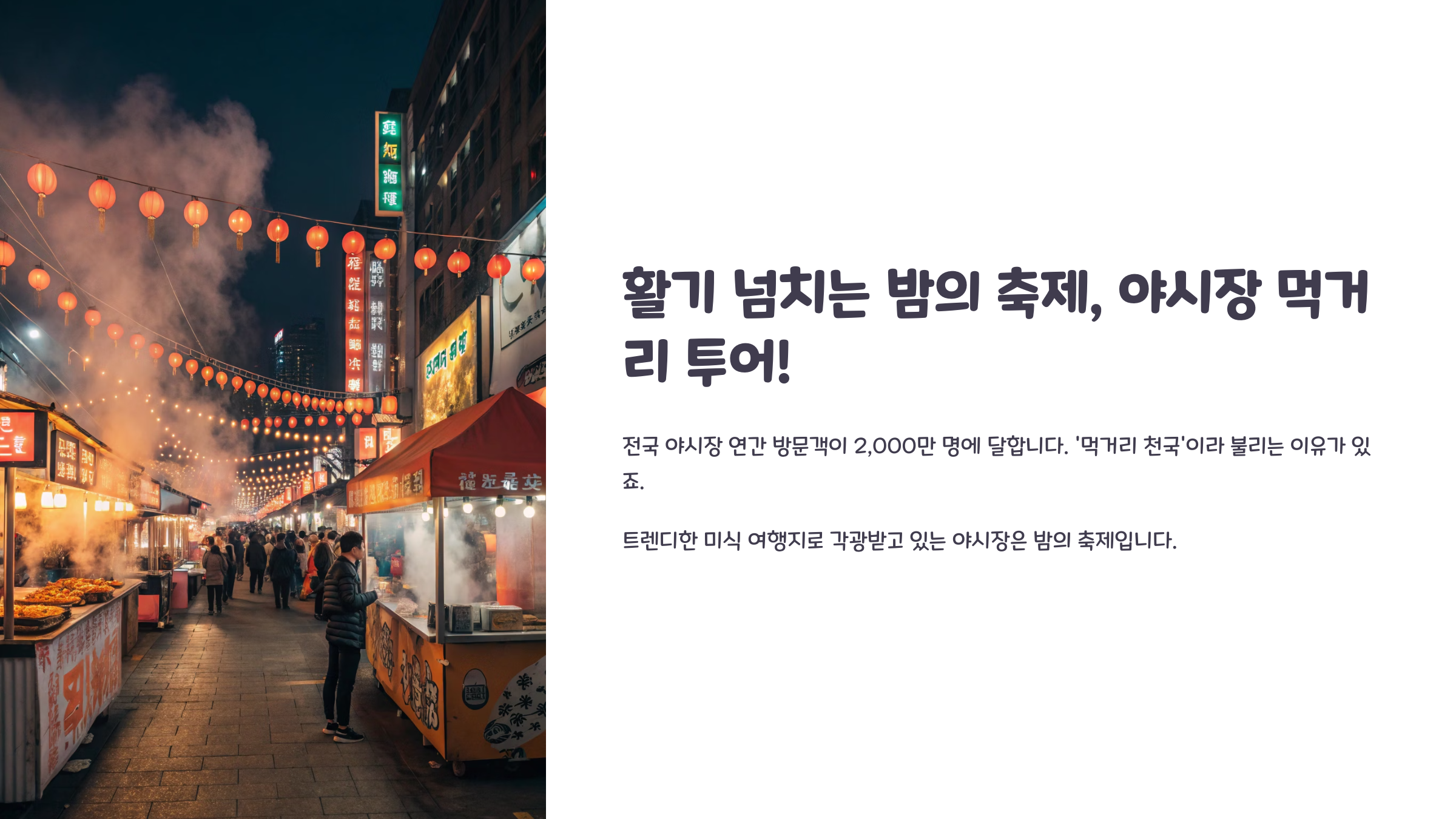 활기 넘치는 밤의 축제, 야시장 먹거리 투어! 🎉