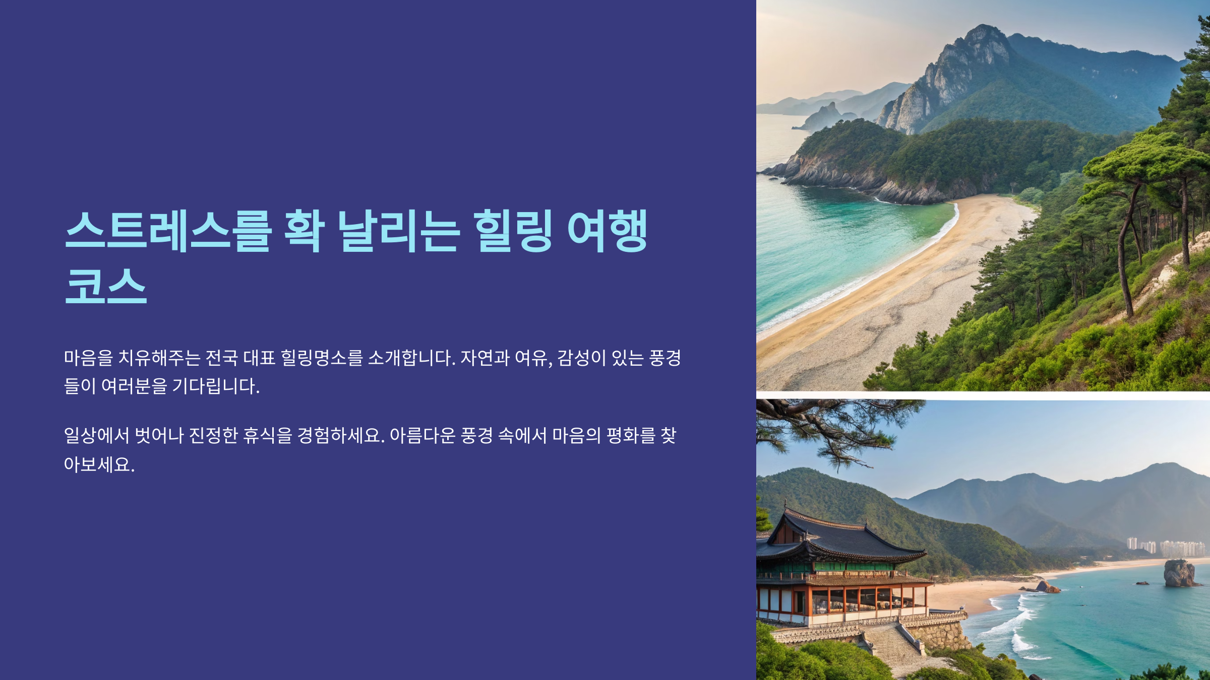 혹시 지금 당장 떠나고 싶은 여행지가 있으신가요? 여러분만의 스트레스 날리는 여행 꿀팁도 댓글로 공유해 주세요!✨