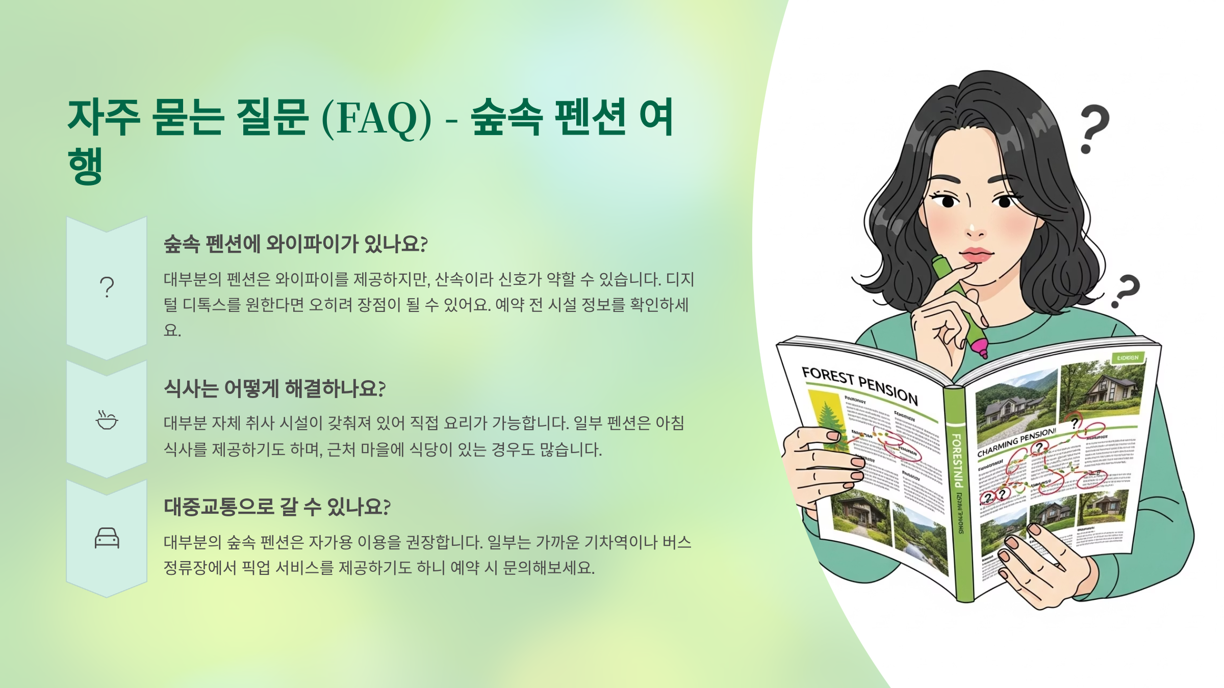 자주 묻는 질문 (FAQ) - 숲속 펜션 여행 ❓