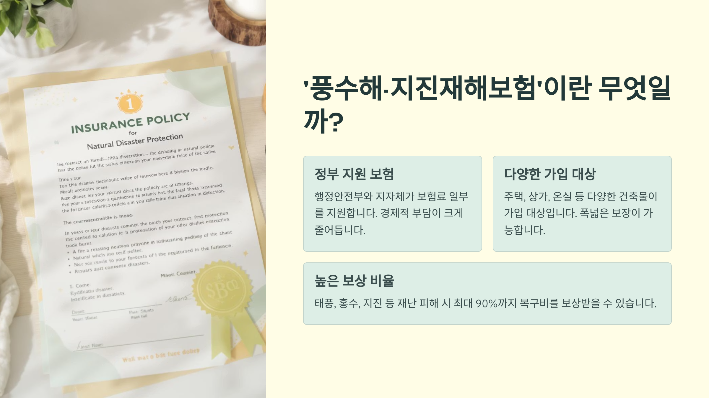 자, 그럼 먼저 '풍수해·지진재해보험'이 어떤 보험인지부터 살펴볼까요? 👇