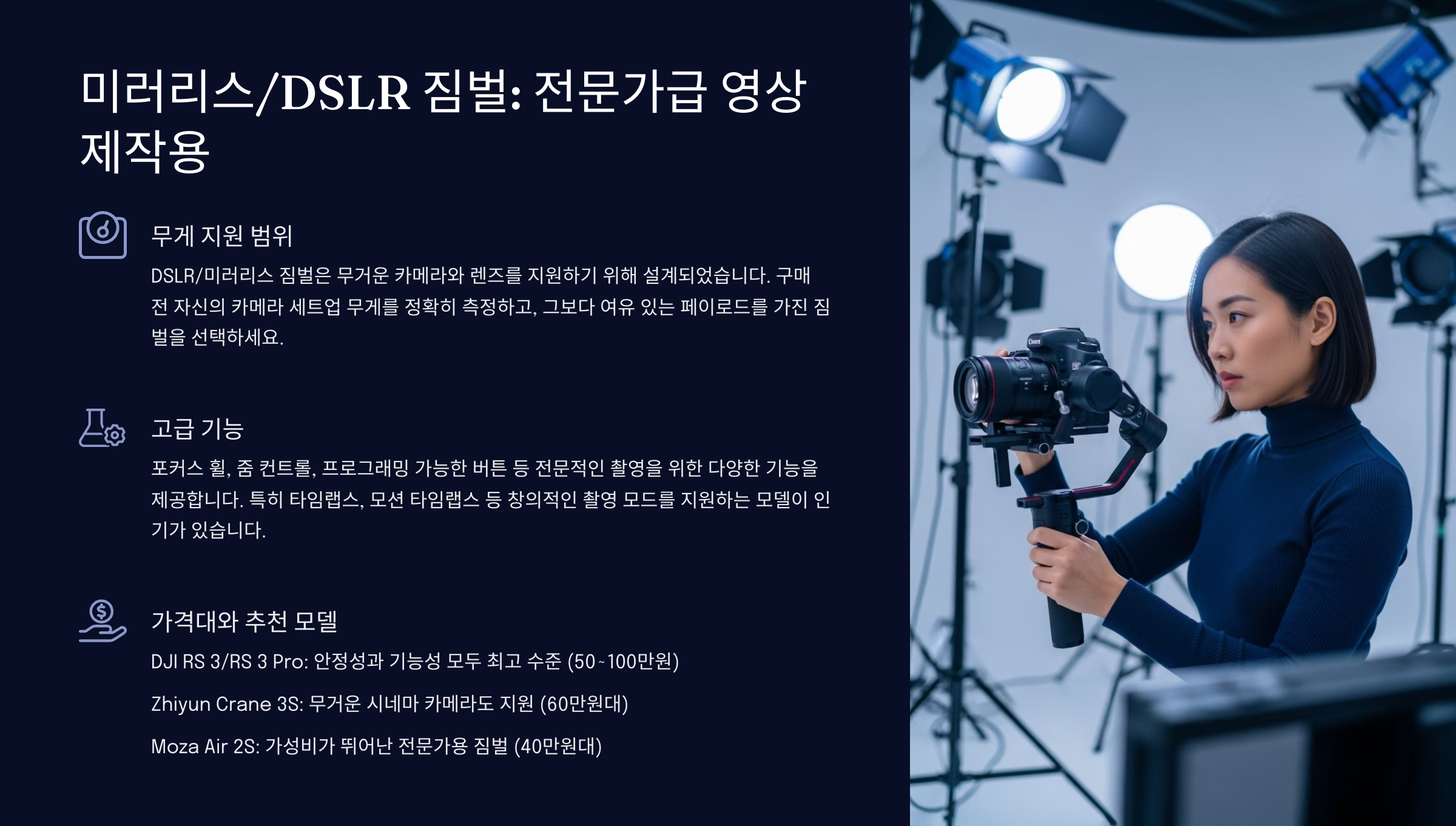 2. 미러리스/DSLR 짐벌: 전문가급 영상 제작용 🎬