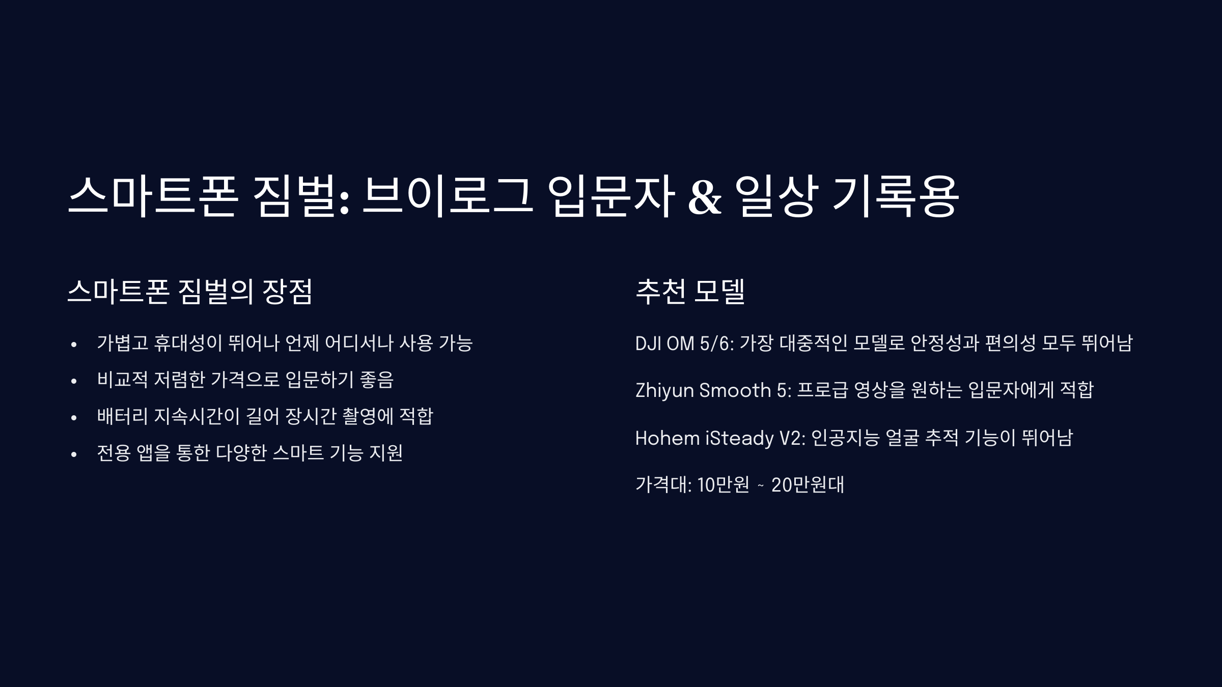 1. 스마트폰 짐벌: 브이로그 입문자 & 일상 기록용 🤳
