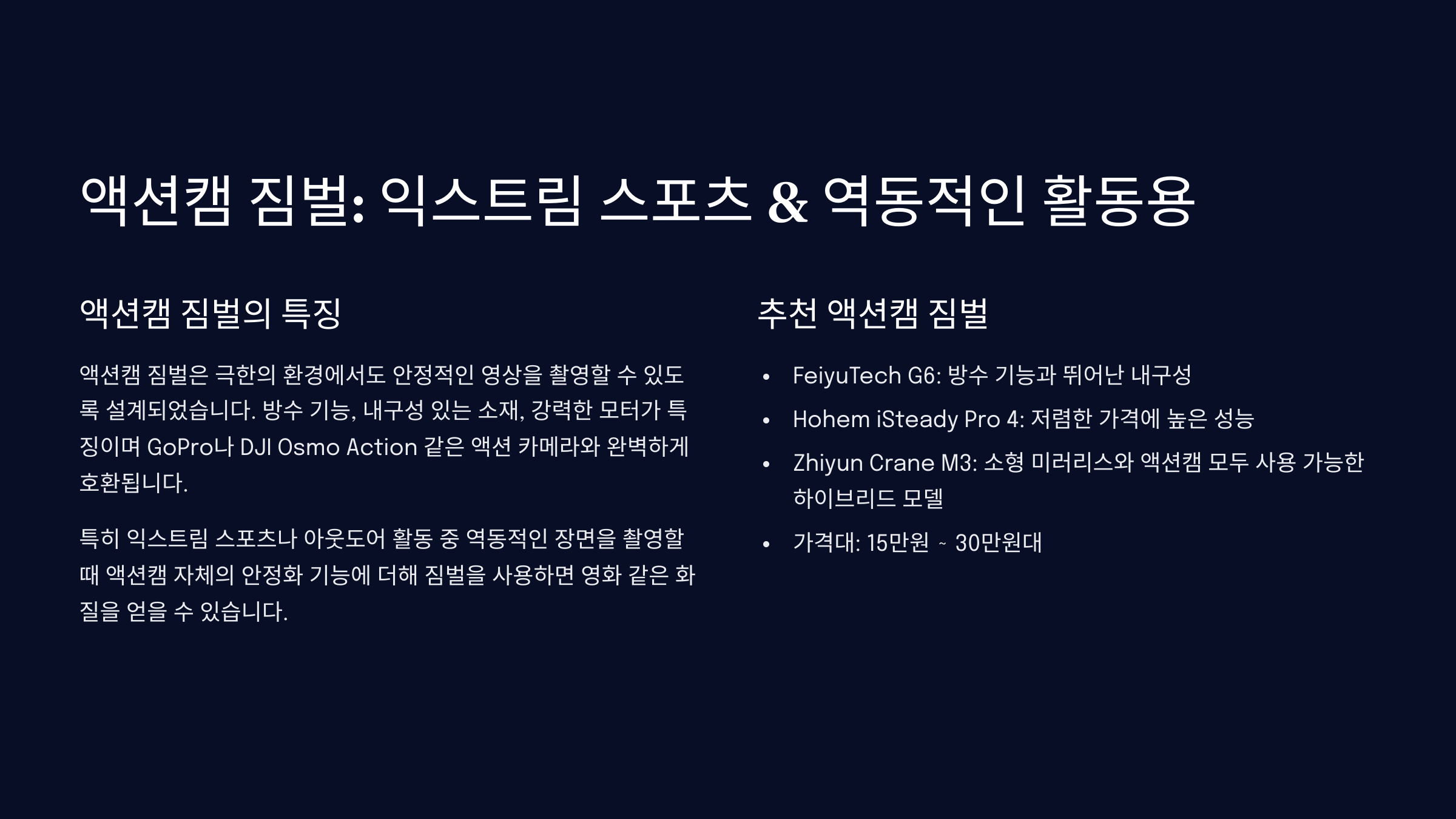 - 단점: 제한적인 활용도 (주로 액션캠 전용).