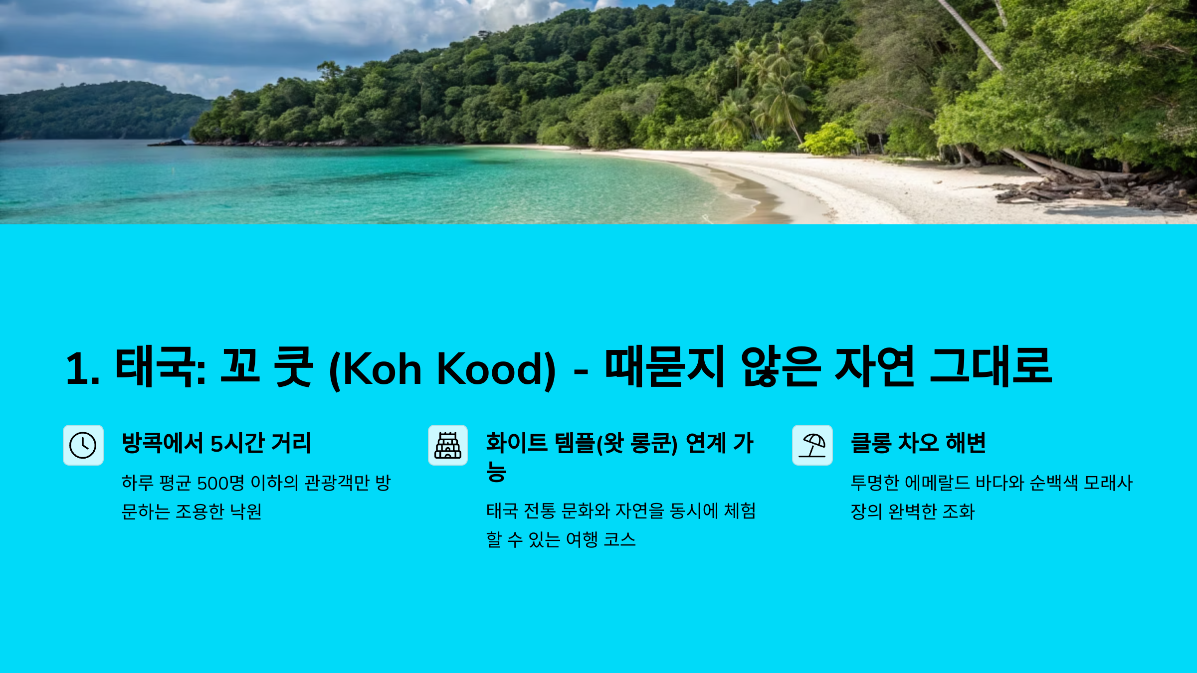 - 🇹🇭 1. 태국: 꼬 쿳 (Koh Kood) - 때묻지 않은 자연 그대로