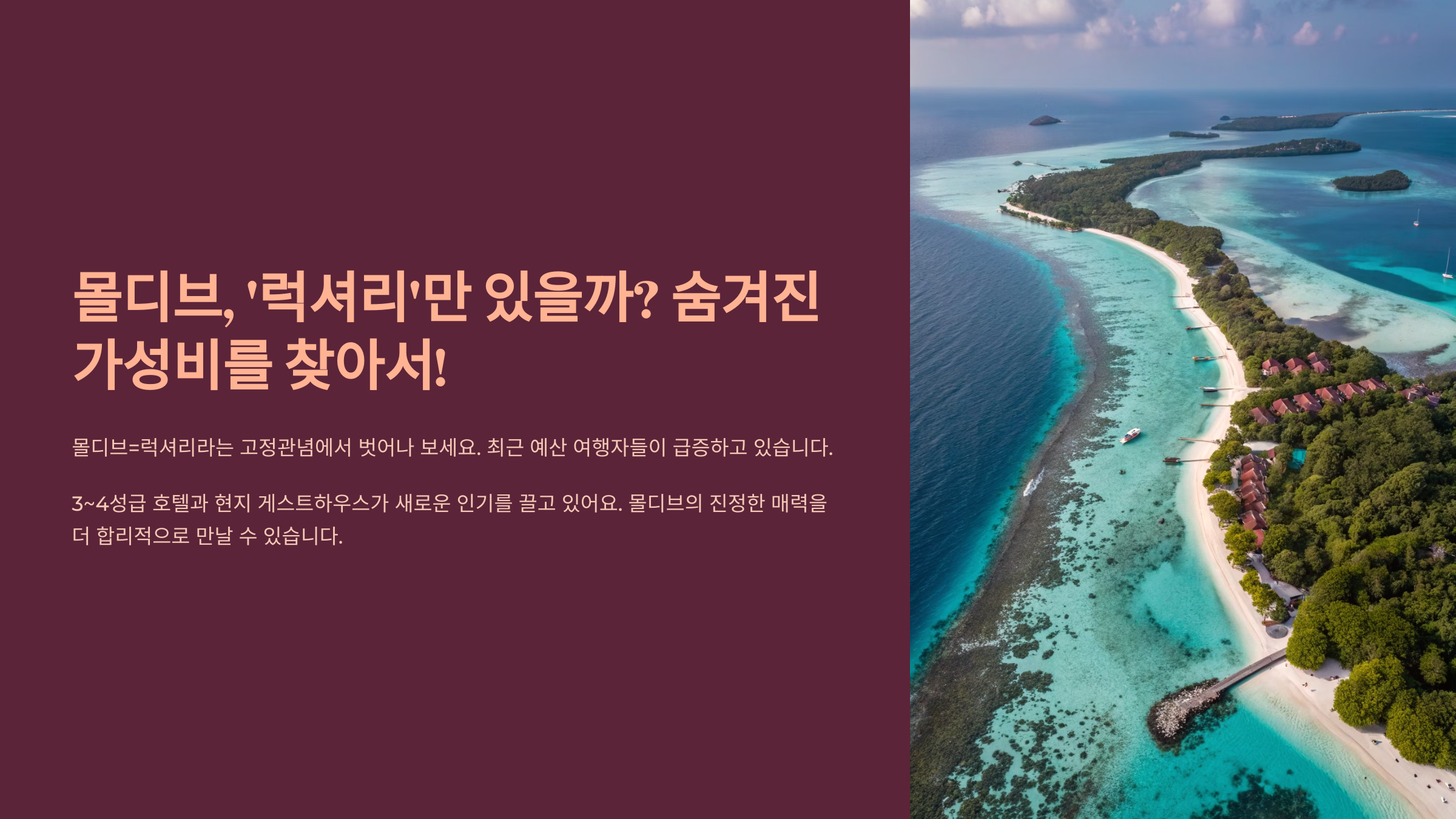 - 🌴 더 길게 머무르거나, 더 자주 방문 가능: 예산 부담이 줄면 여행 기간을 늘리거나, 꿈에 그리던 몰디브를 여러 번 방문할 기회를 만들 수 있습니다.