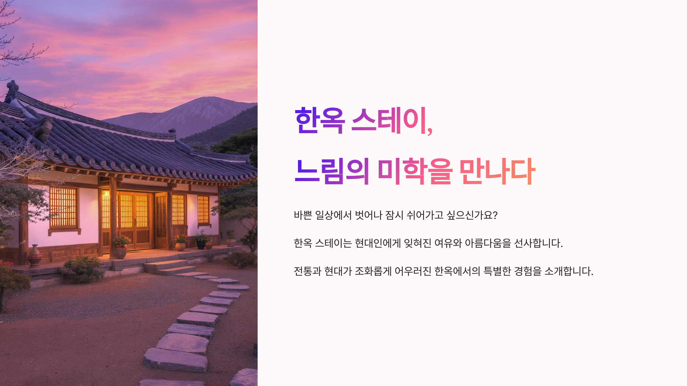 자, 그럼 고즈넉한 한옥의 정취 속으로 함께 떠나볼까요? 👇