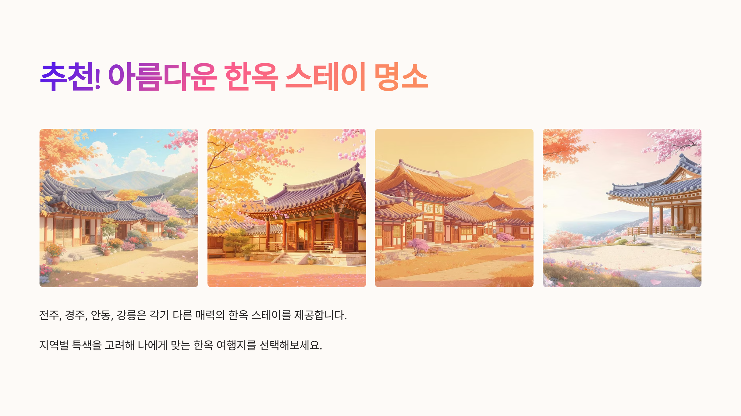 📍 추천! 아름다운 한옥 스테이 명소 (예시)