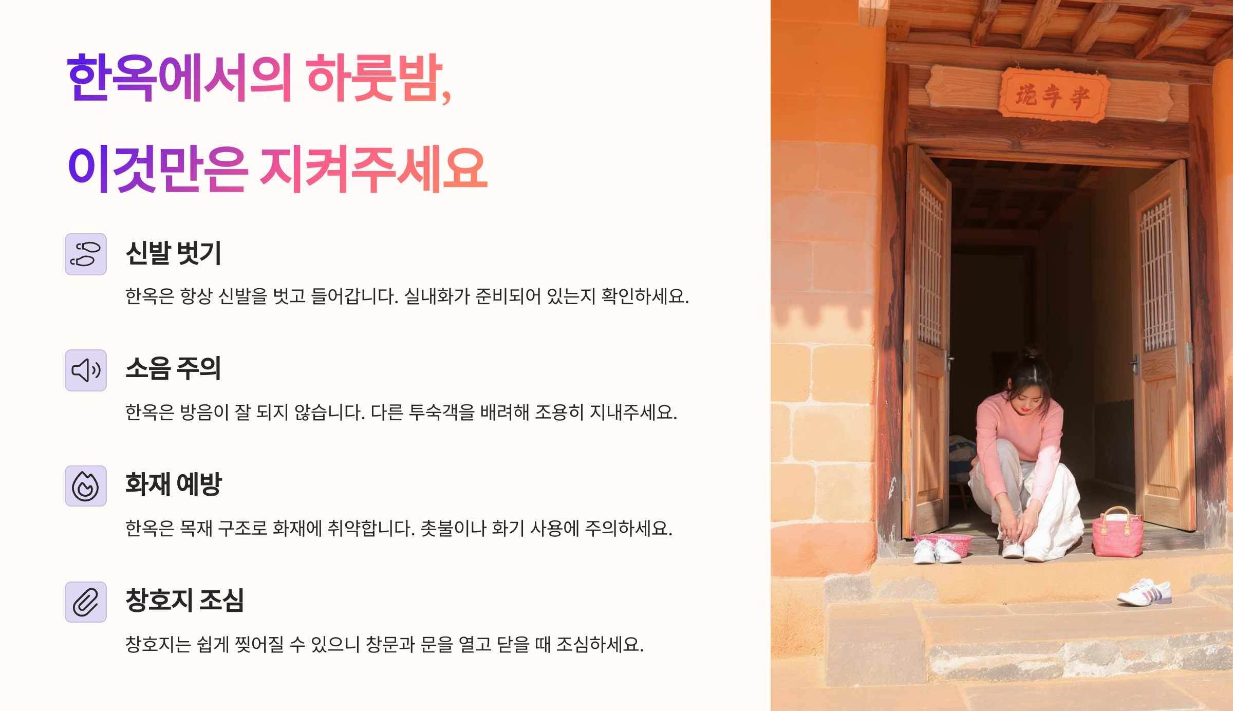 🙏 한옥에서의 하룻밤, 이것만은 지켜주세요 (이용 에티켓)