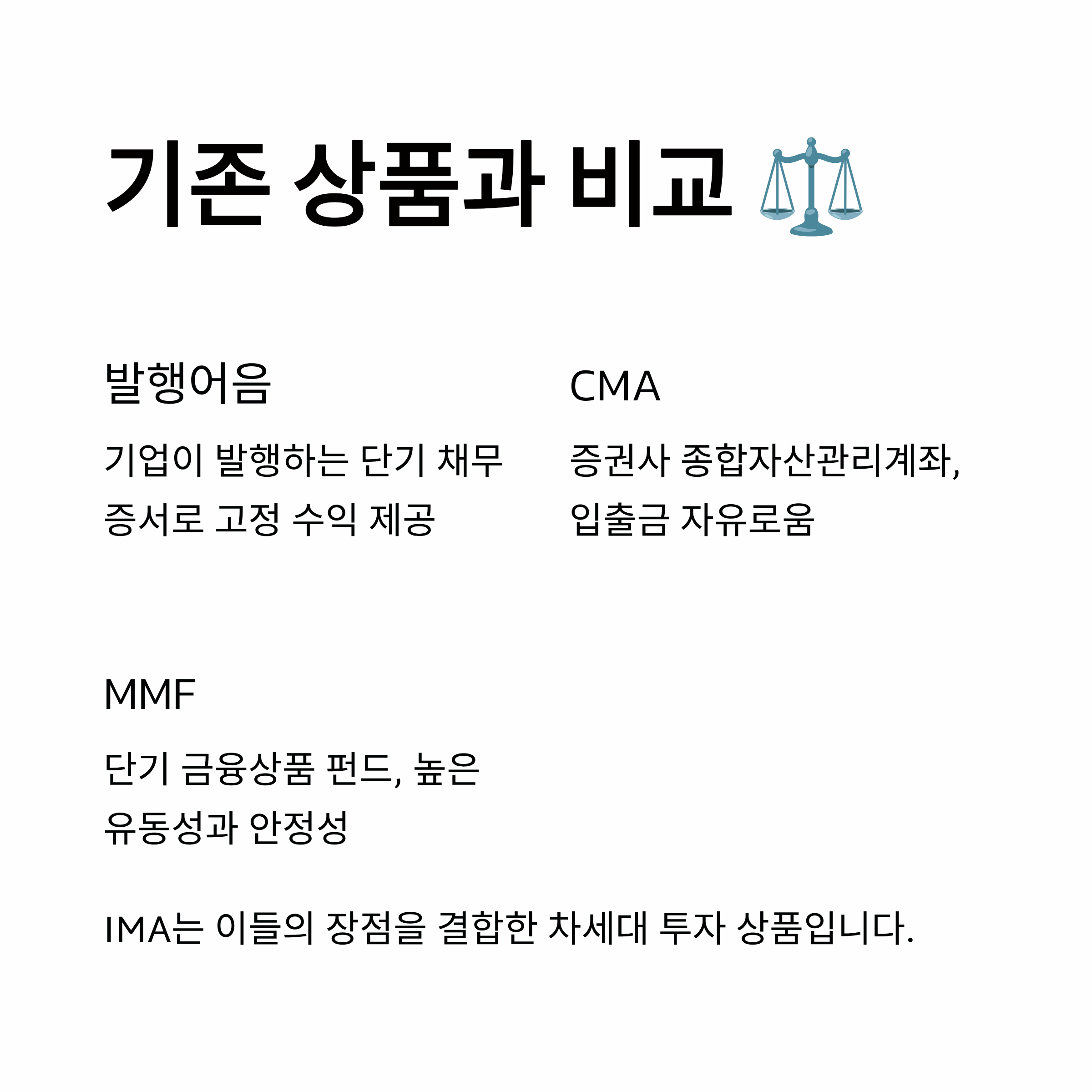 IMA는 기존 증권사의 다른 상품들과 유사해 보이지만, 명확한 차이점이 있습니다.