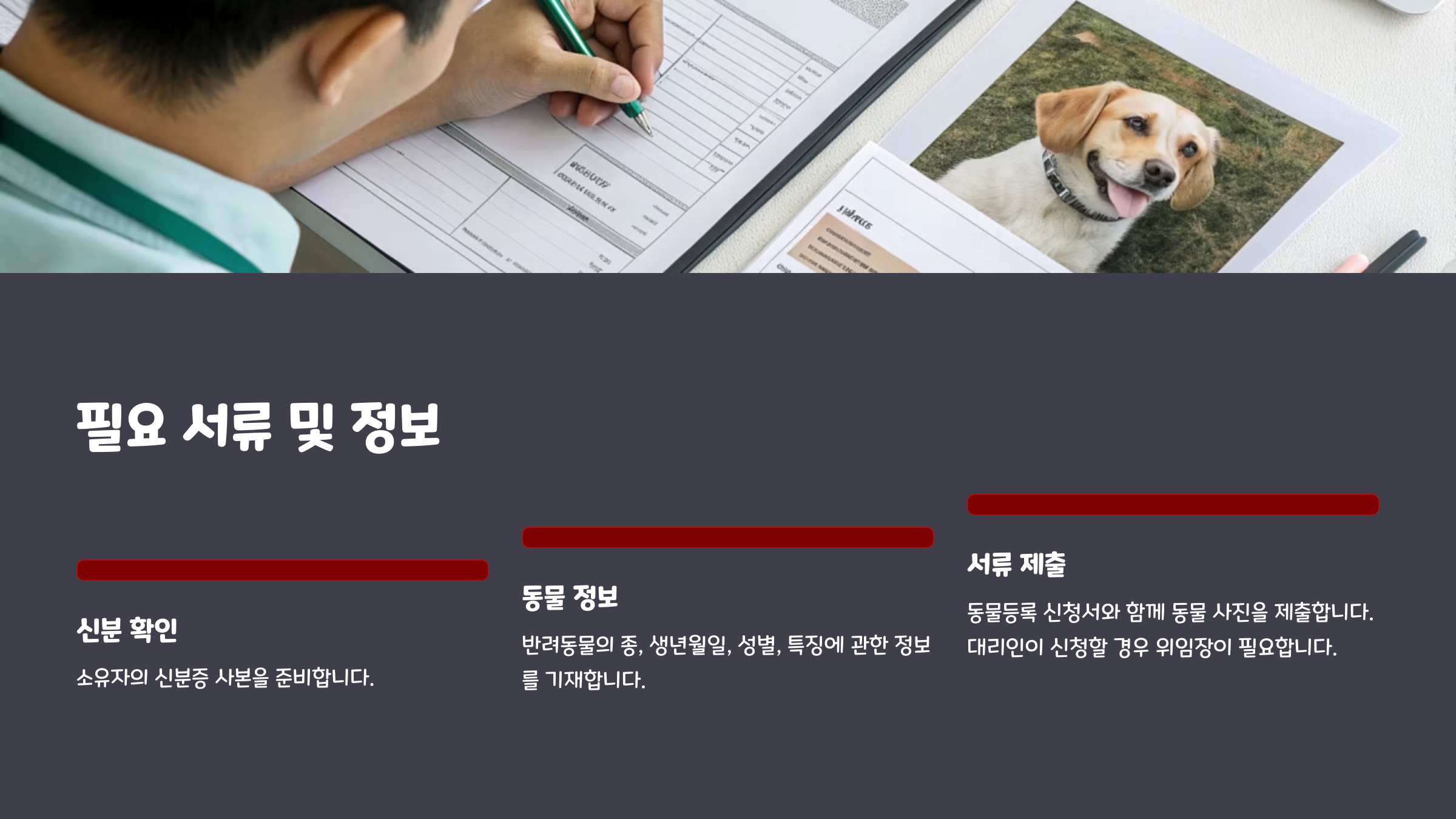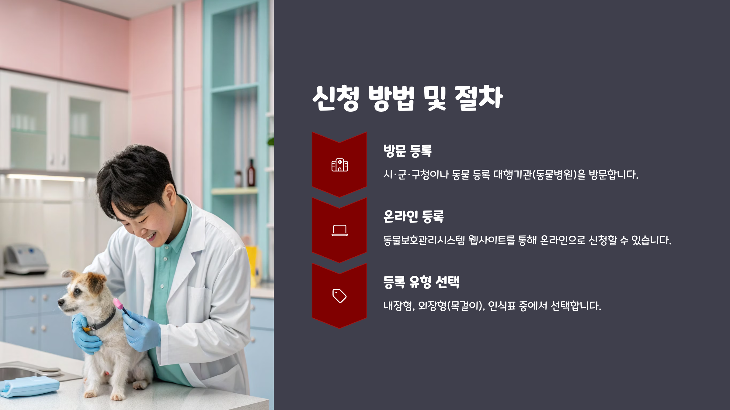 반려동물 등록은 생각보다 간단합니다. 다음 절차를 따라 진행하면 됩니다.