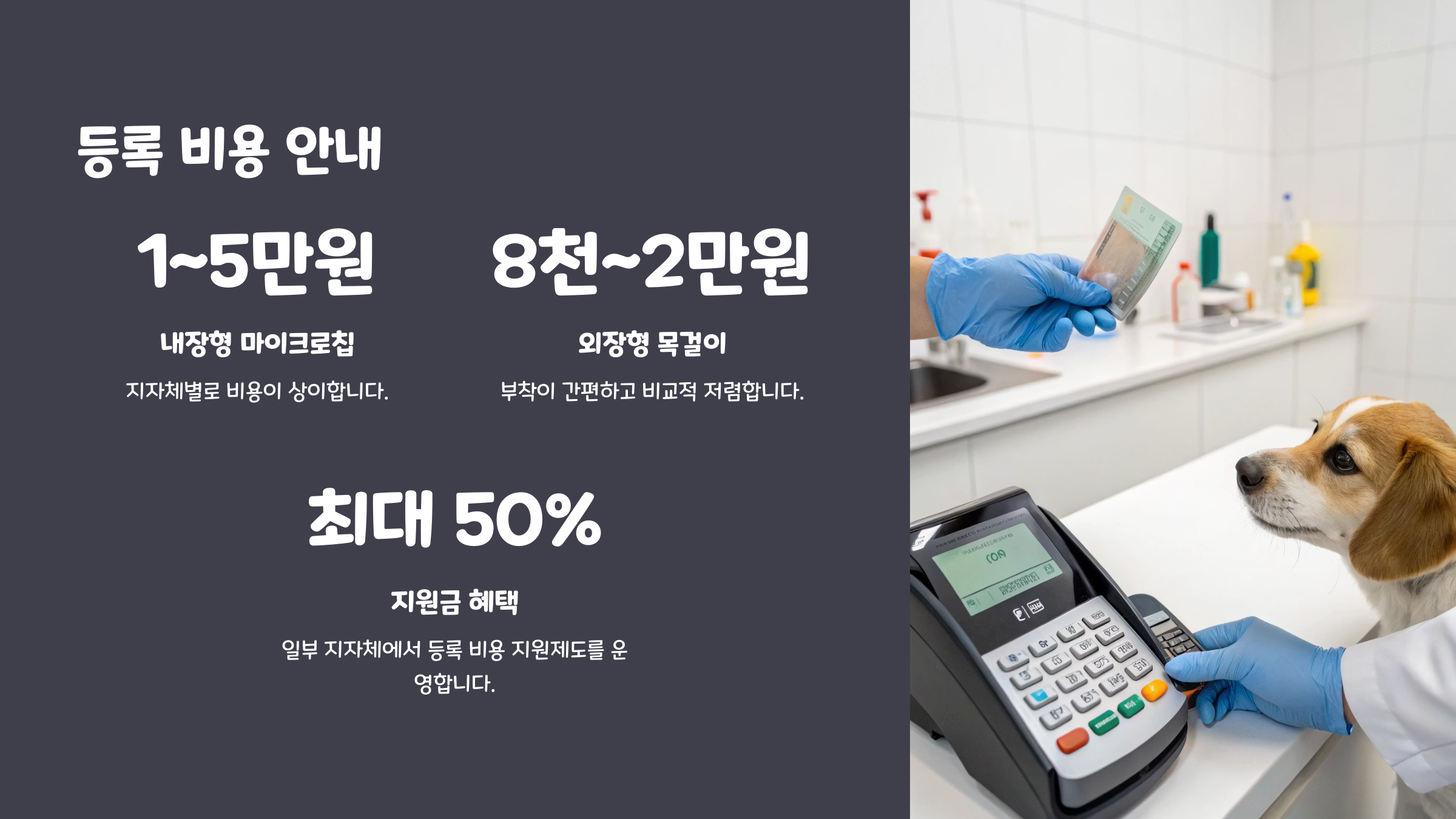 - 수수료 납부: 지자체별로 정해진 등록 수수료 및 식별장치 비용을 납부합니다.