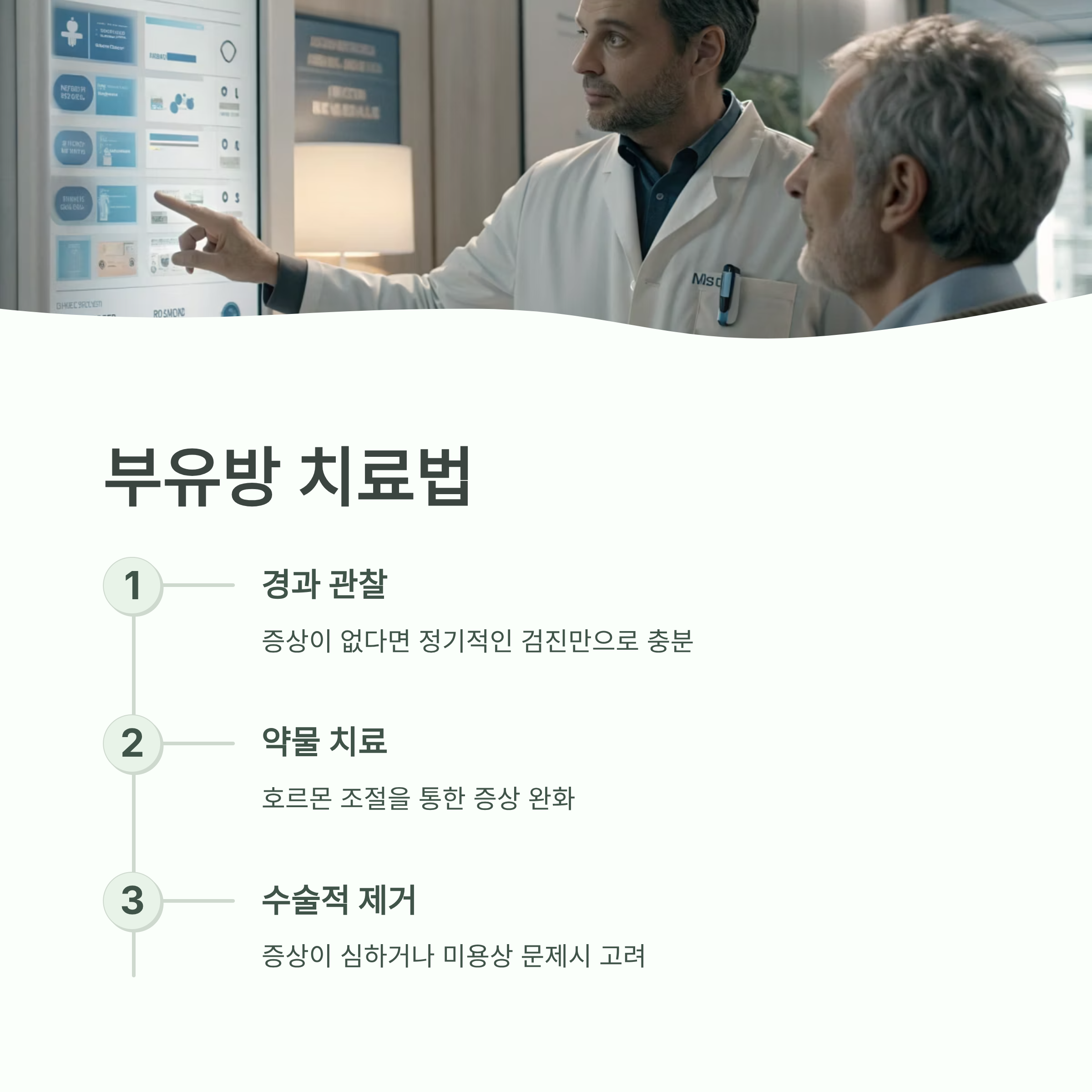 부유방의 치료는 증상의 정도, 조직의 크기, 환자의 불편함 정도에 따라 달라져요. 가벼운 경우엔 굳이 수술적인 치료 없이 경과 관찰만으로도 충분하지만, 통증이 있거나 미용적인 고민이 클 경우엔 적극적인 치료가 필요해요. 특히 기능적인 문제까지 동반된다면 치료를 더 이상 미룰 이유가 없어요.