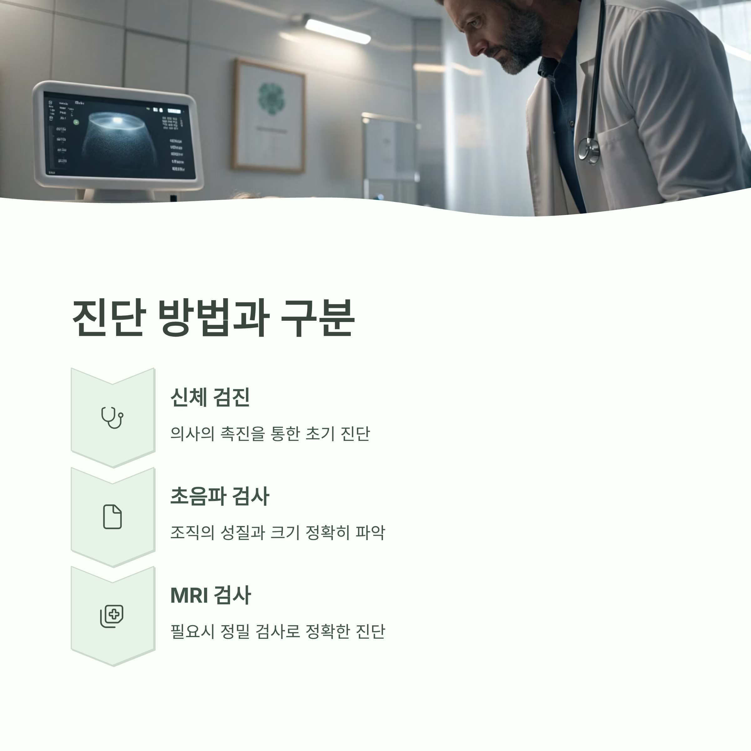 | 감별 방법 | 초음파, 조직검사 | 초음파 | 혈액 검사, 촉진 |