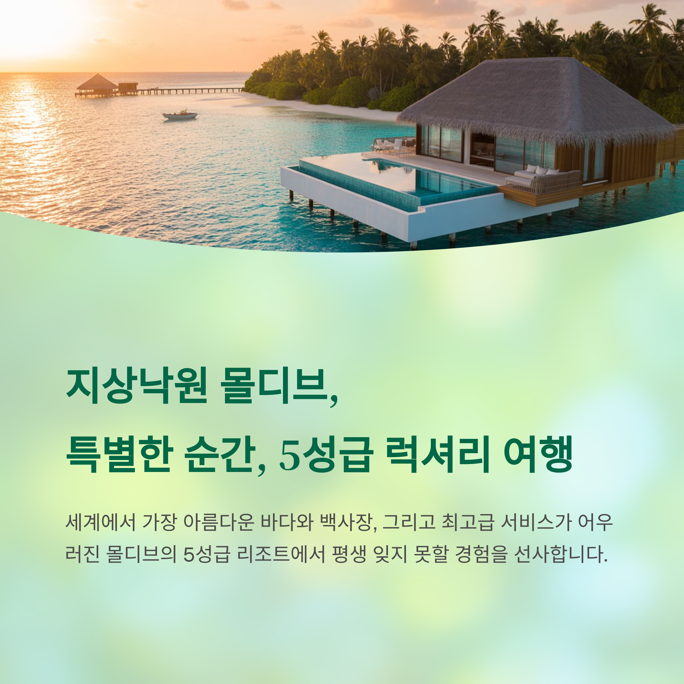 몰디브 5성급 리조트는 단순한 숙소를 넘어, 그 자체로 하나의 완성된 '경험'을 제공합니다.