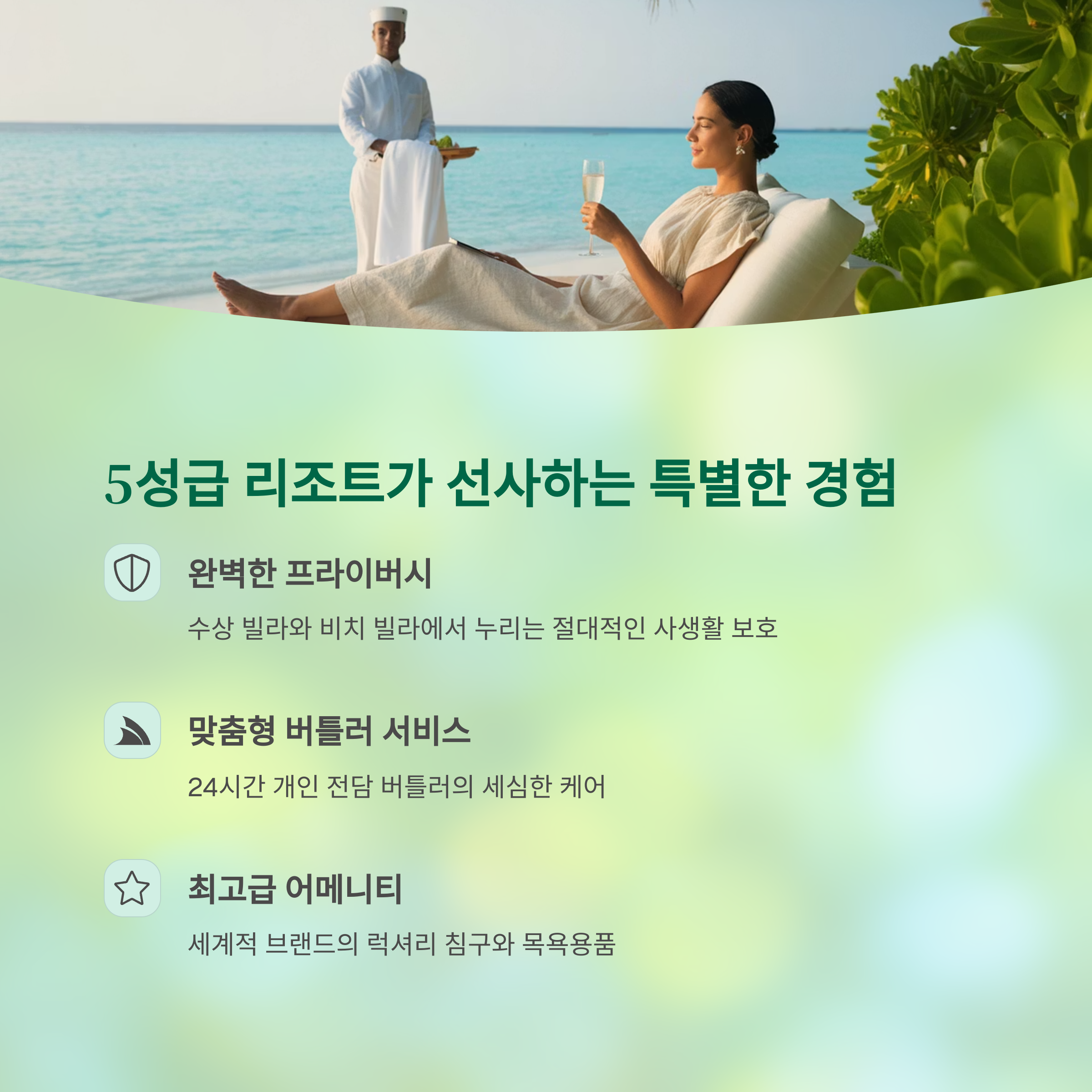 몰디브 5성급 리조트, 무엇이 다를까? (핵심 특징) 💎
