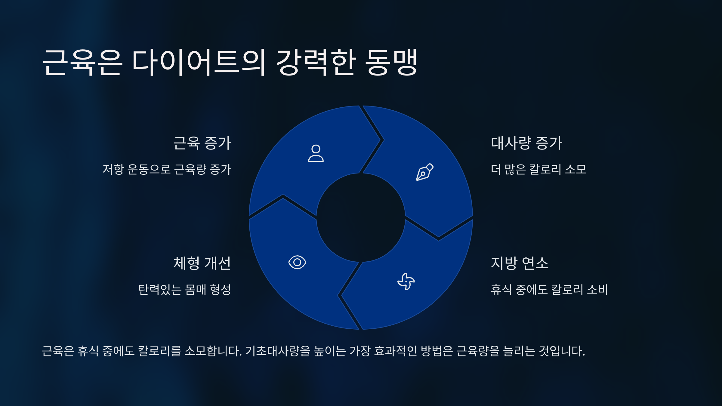 - !! 탄탄하고 건강한 몸매: 근육은 몸의 라인을 탄탄하게 만들어주고, 체중 감량 후 피부가 처지는 것을 예방하는 데도 도움이 됩니다. 단순히 마른 몸이 아닌, 건강하고 보기 좋은 몸매를 만드는 데 필수적입니다.