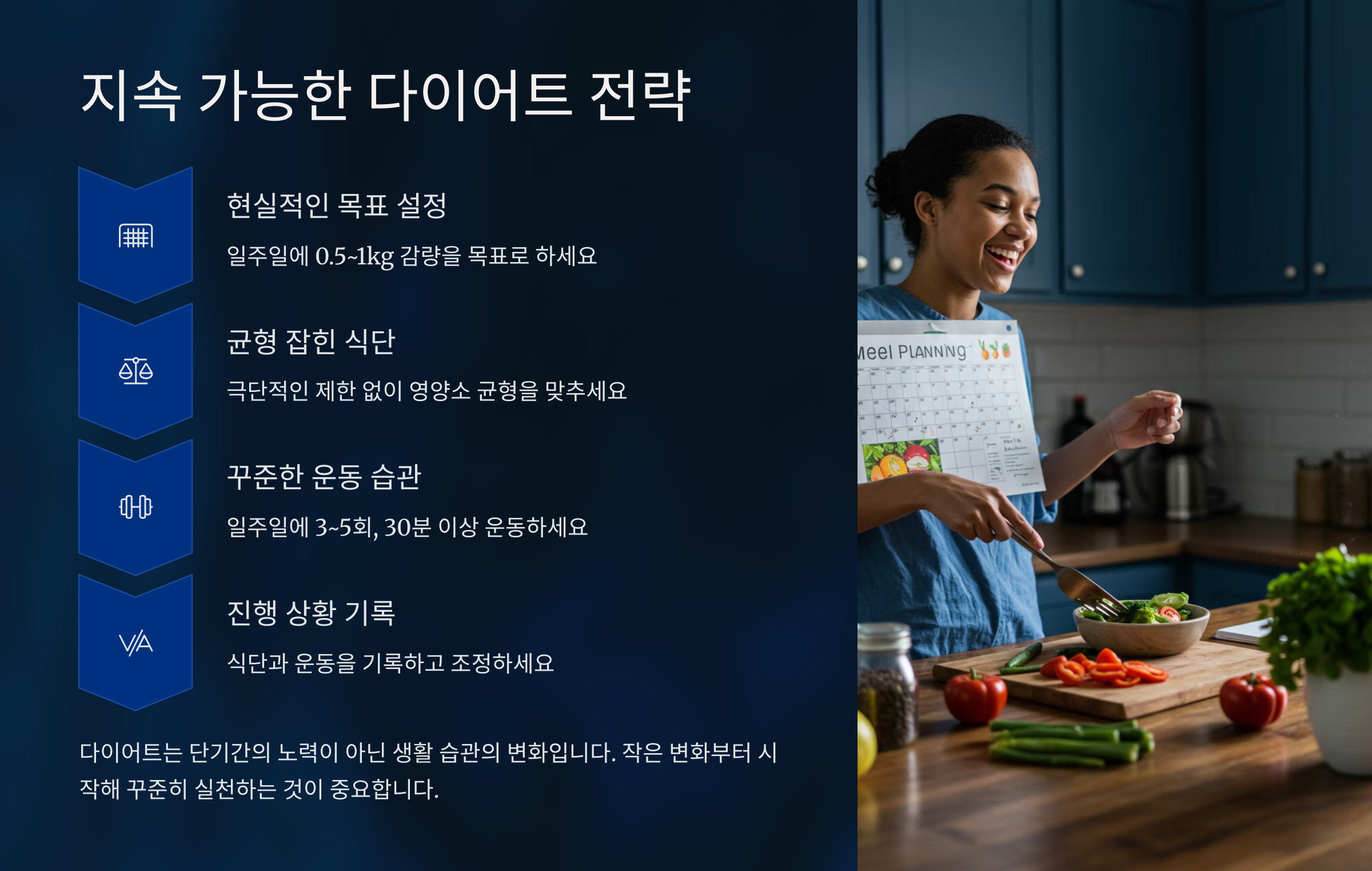 건강한 다이어트는 '평생 가지고 갈 나를 위한 좋은 습관'을 만드는 과정임을 기억하고, 조급해하지 않고 꾸준히 나아가세요.