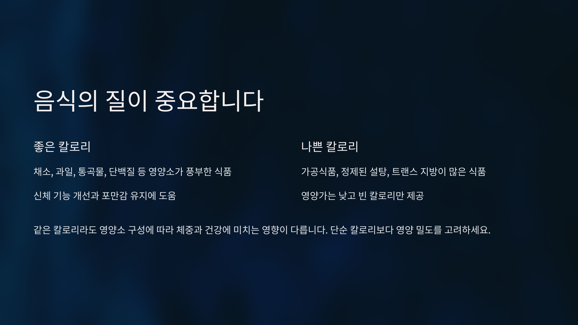 🍎 2. 모든 칼로리는 같지 않다: 음식의 '질'이 중요!