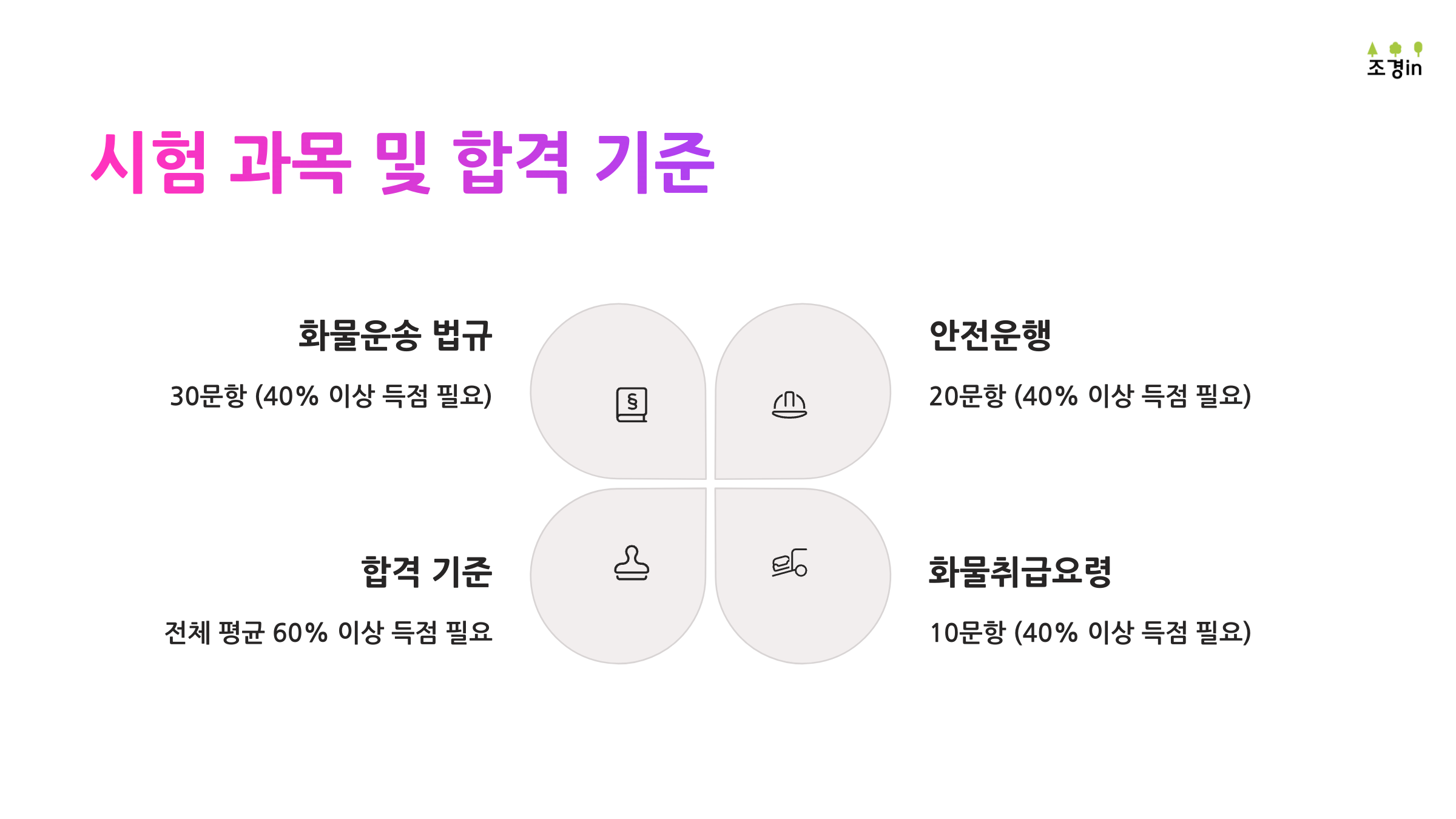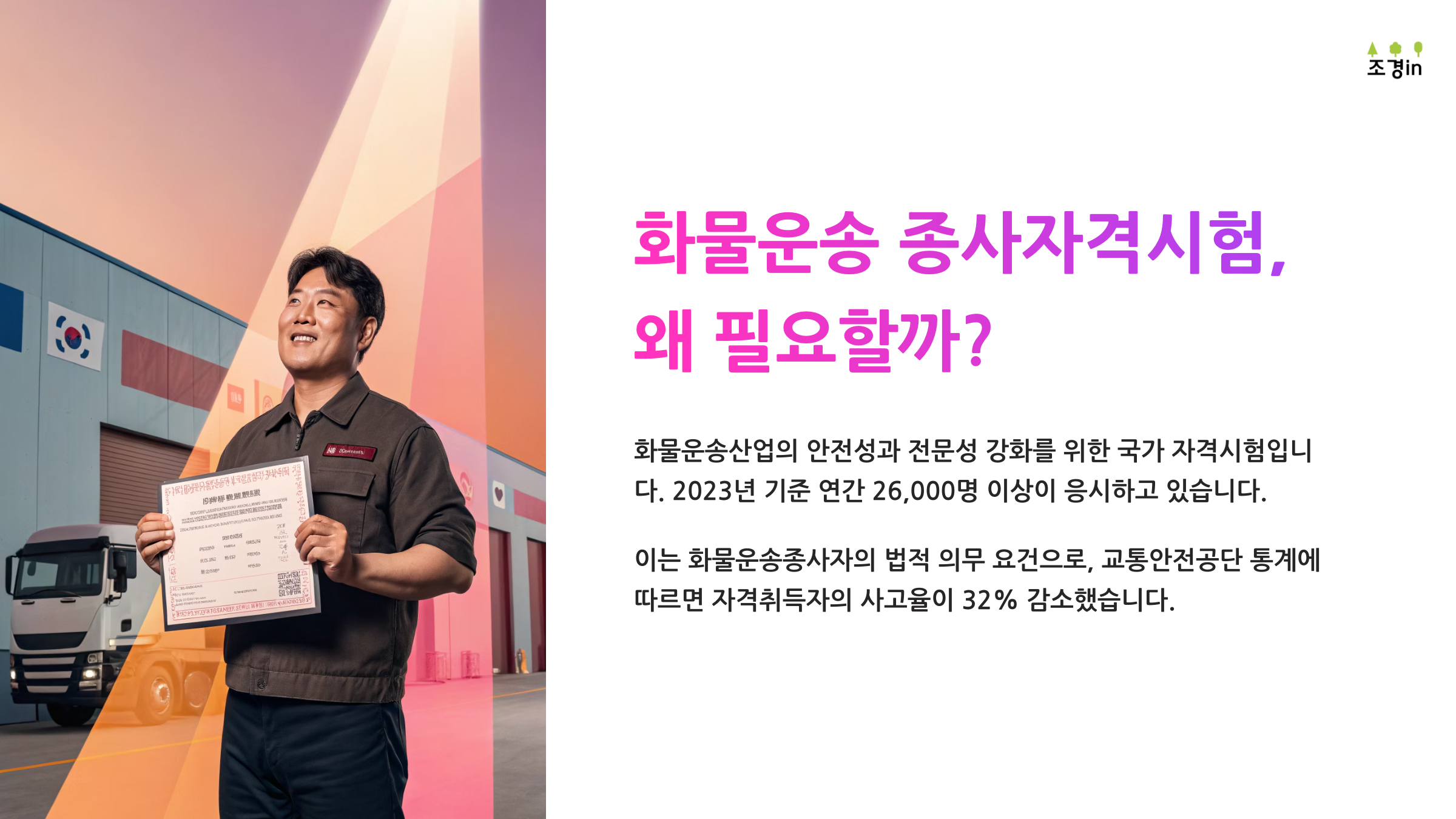 📜 사업용(영업용) 화물자동차를 운전하여 화물을 운송하려는 분들에게 '화물운송 종사자격시험' 합격은 필수입니다. 이는 단순히 운전 능력만을 평가하는 것이 아니라, 화물 운송에 필요한 관련 법규, 안전 운행 요령, 화물 취급 방법 등 전문적인 지식과 소양을 갖추었는지 확인하여 교통 안전을 확보하고 운송 서비스의 질을 높이기 위한 중요한 제도입니다.