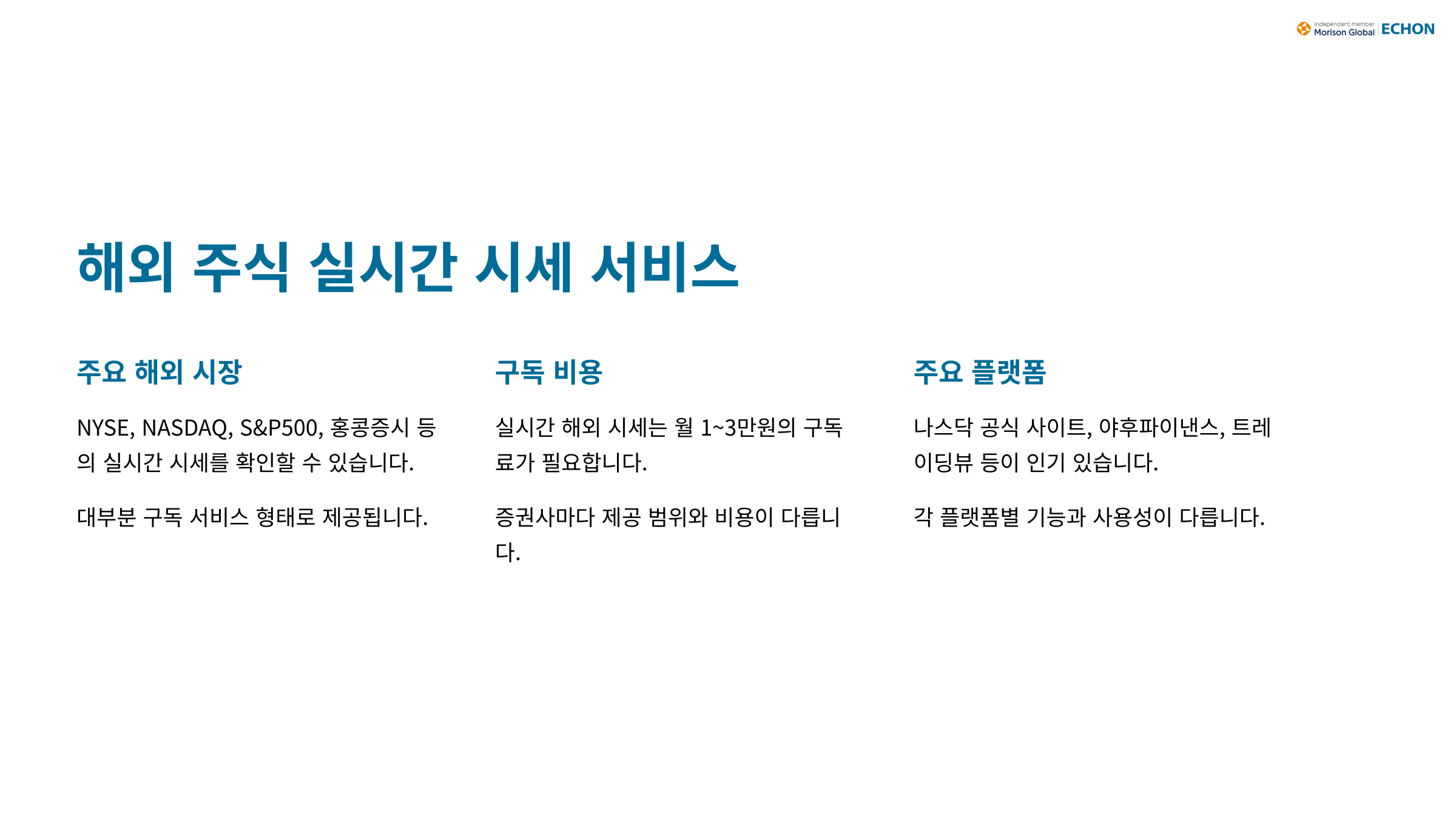 A1. 국내 주식은 대부분 무료로 제공되며, 해외 주식은 유료일 수 있어요.