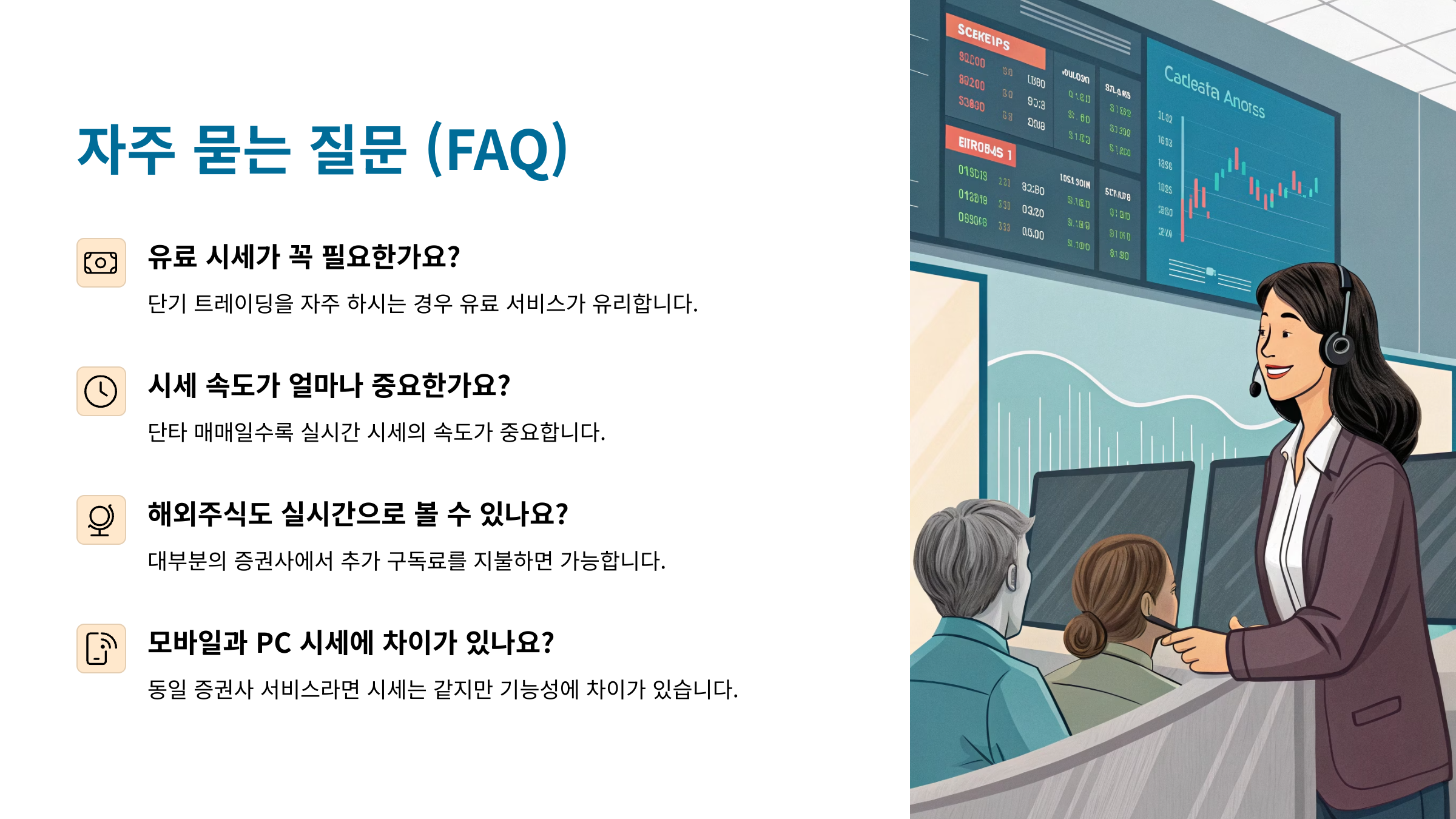 기본적으로 국내 증권사 앱이나 웹사이트는 무료 시세 제공이 기본이에요. 다만 일부 해외 증시는 유료 실시간 데이터 사용이 필요할 수 있답니다.