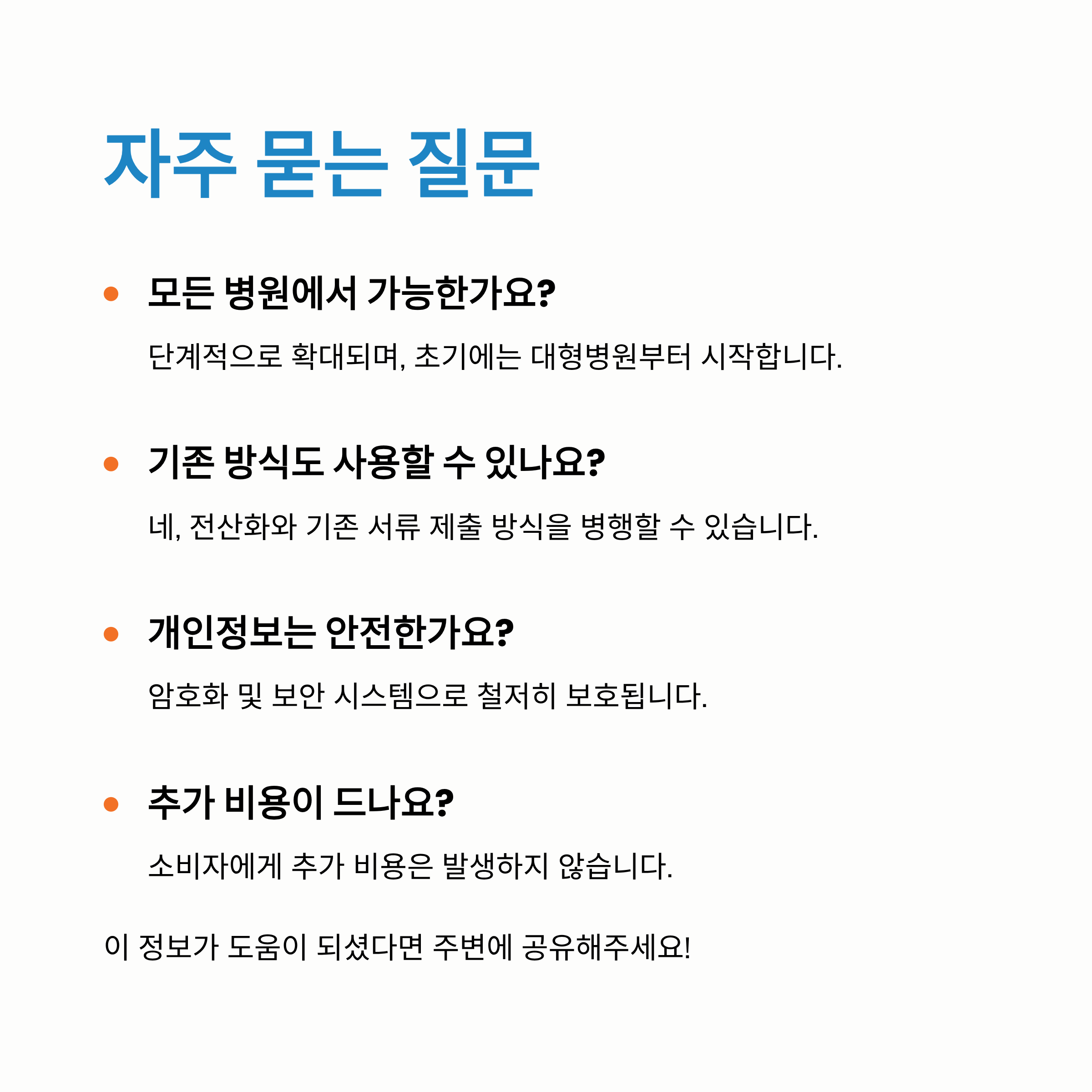 - 시간 및 사회적 비용 절감: 서류 발급을 위해 병원에 다시 방문하거나, 팩스/우편을 보내는 데 소요되었던 시간과 사회적 비용을 크게 줄일 수 있습니다.