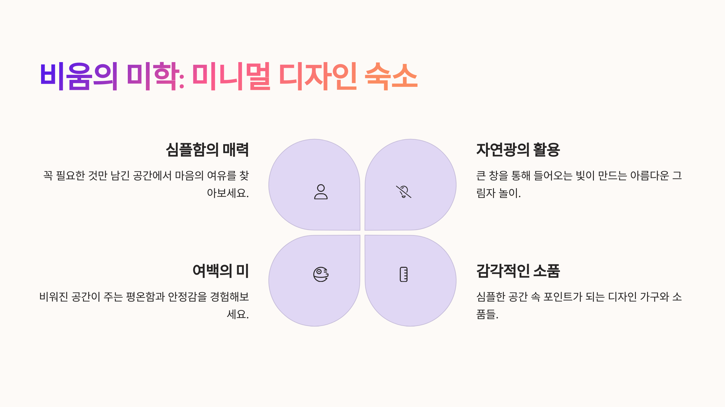 3. 비움의 미학: 미니멀 & 감각적인 디자인 숙소 ⚪