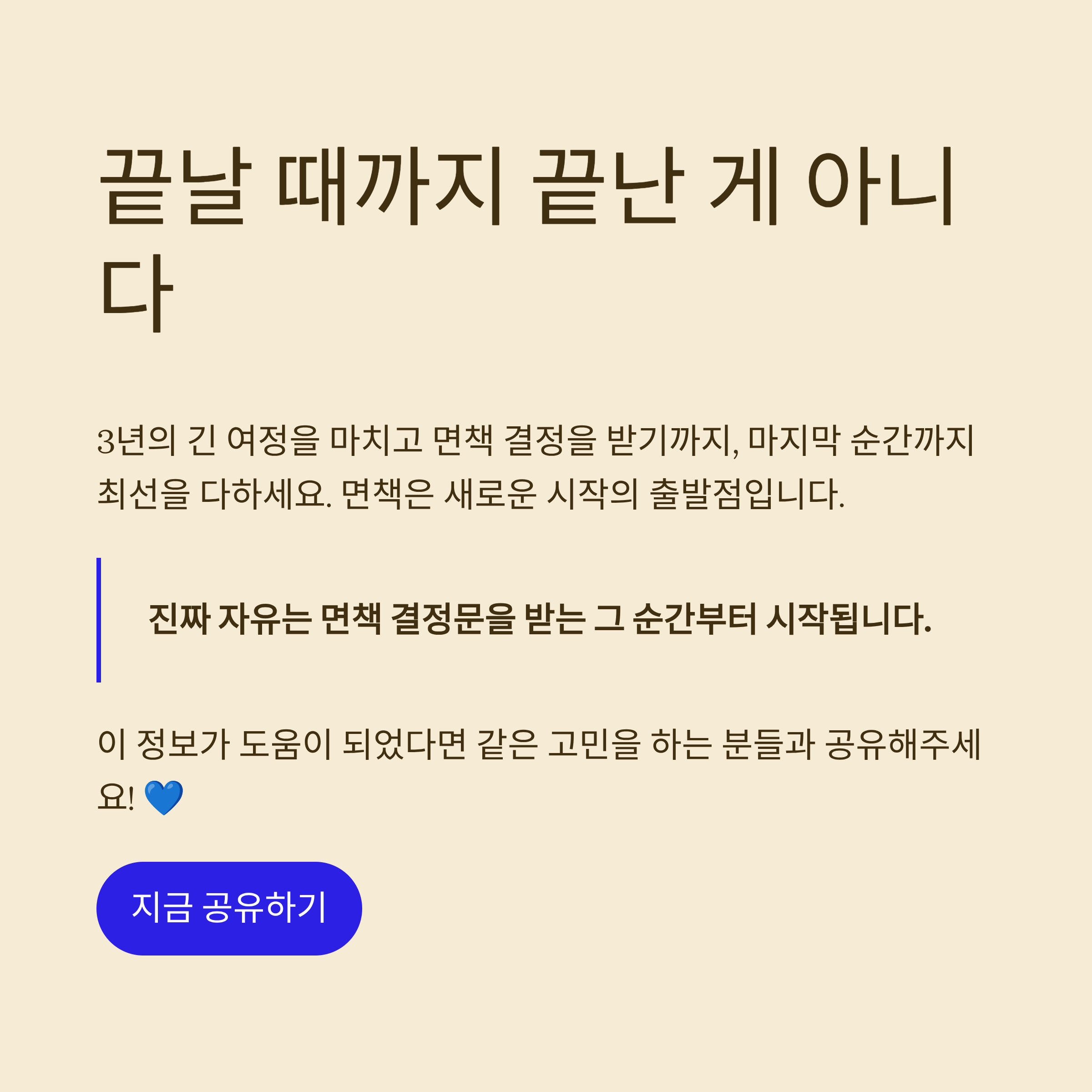 ✨ 1. 3년간의 여정, 그리고 마지막 관문 '면책'