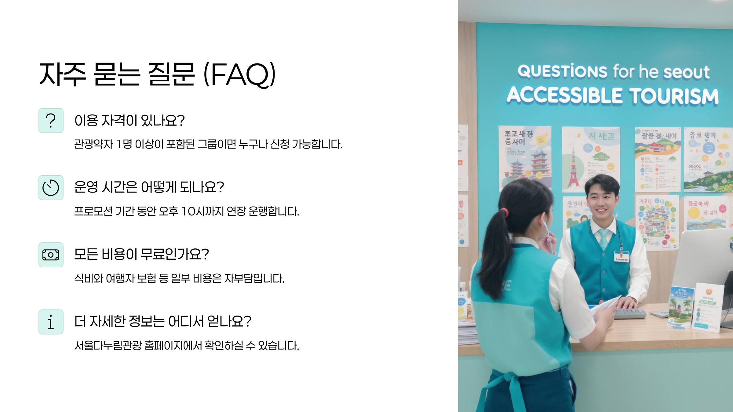 자세한 이용 방법 및 규정은 반드시 서울다누림관광센터 홈페이지를 참고하세요!