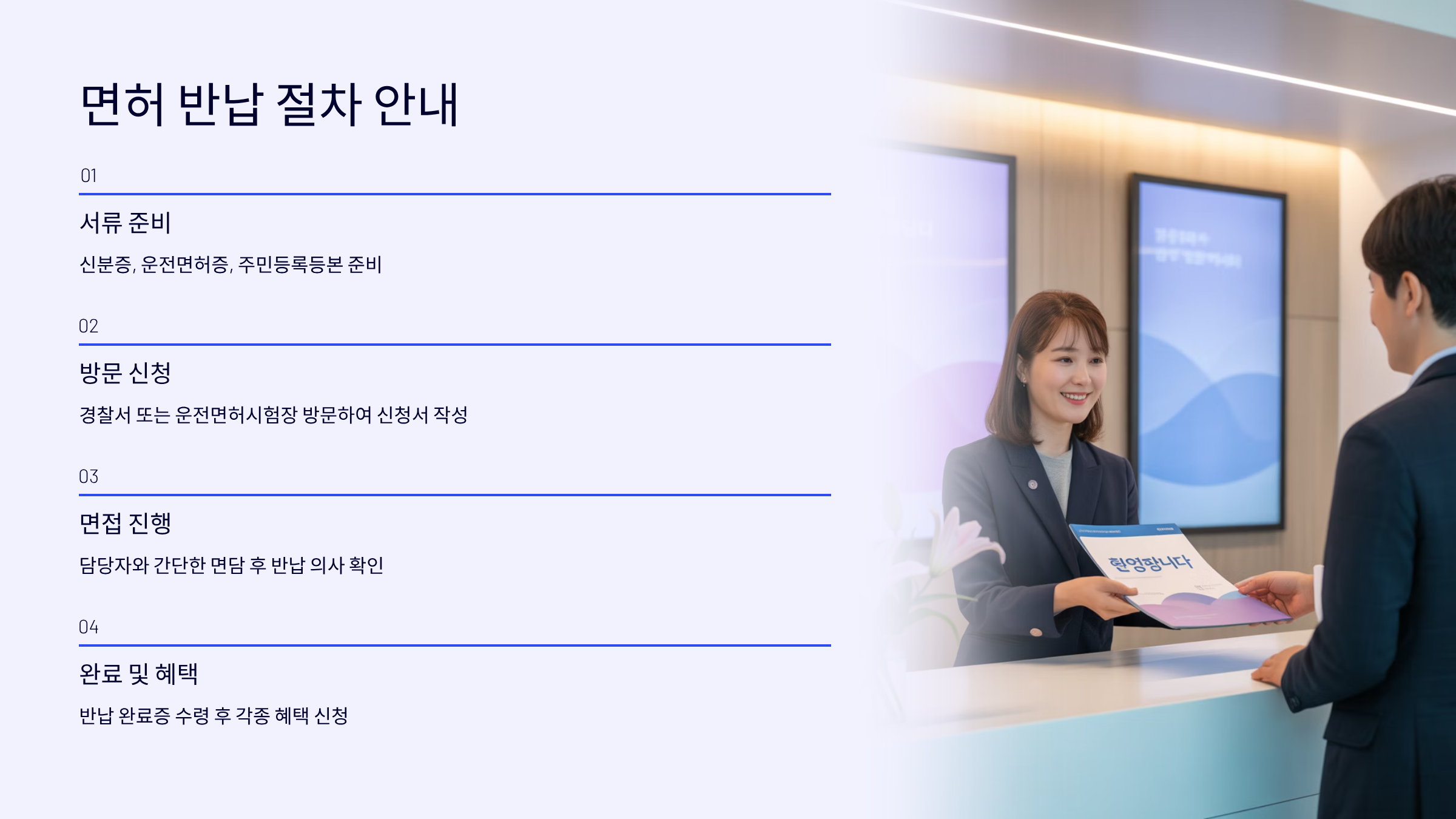 다음은 '어떻게' 반납을 하는지, 실제 면허 반납 절차를 하나씩 안내해드릴게요. 행정절차 걱정 마세요! 아래에서 쉽게 따라할 수 있어요. 📝