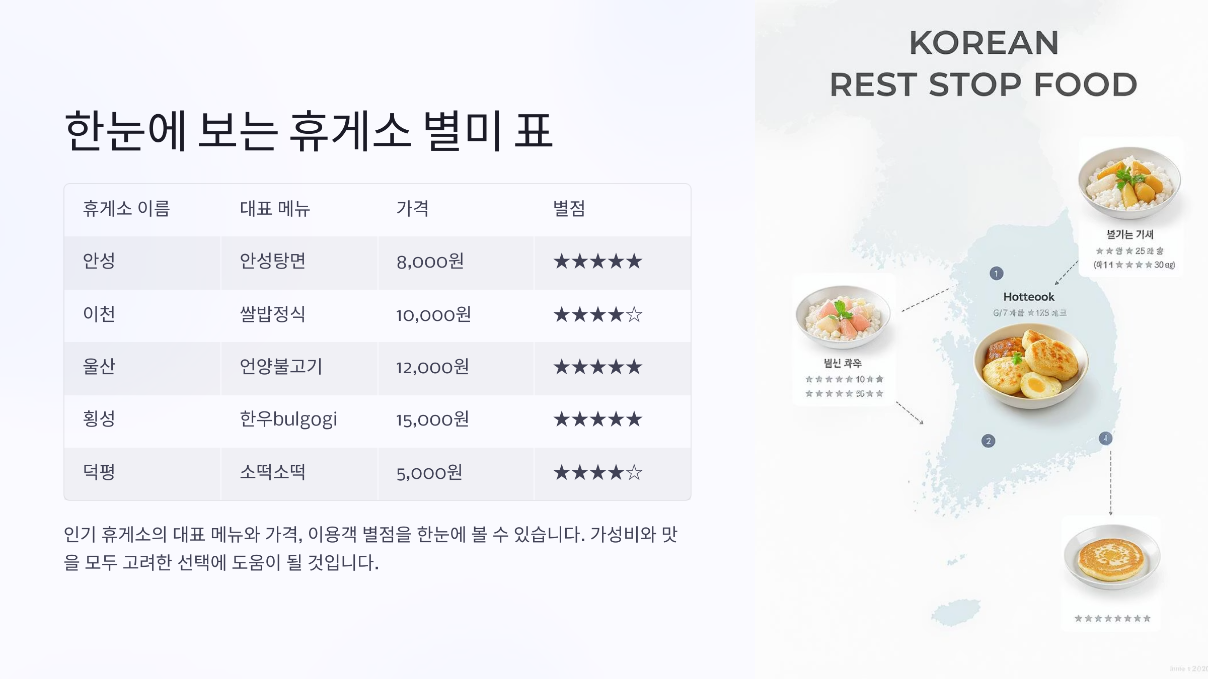 한눈에 보는 휴게소 별미 표