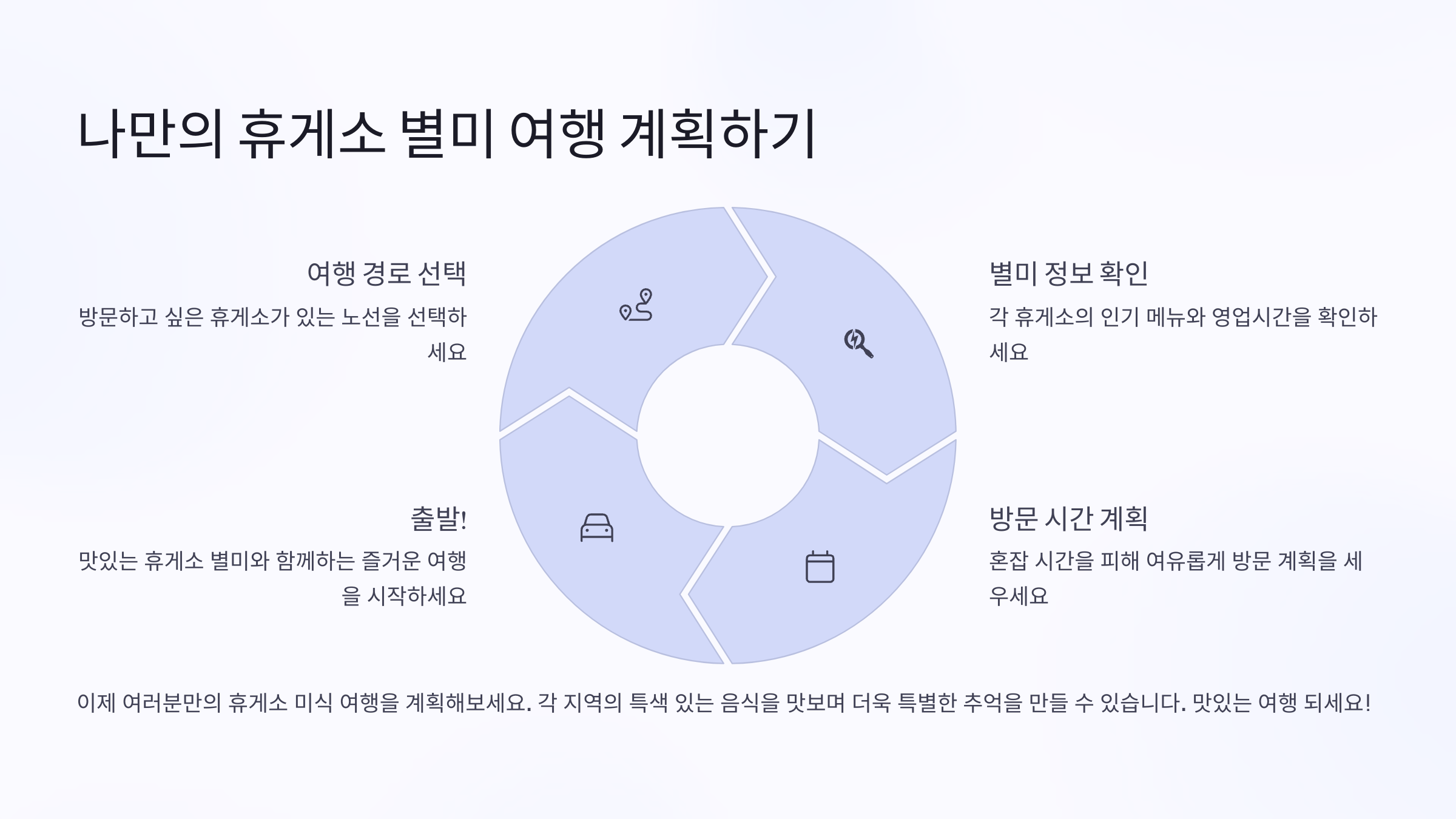 - 방문 전 한국도로공사 휴게소 맛집 지도를 미리 확인하면 동선 짜기가 편리합니다.